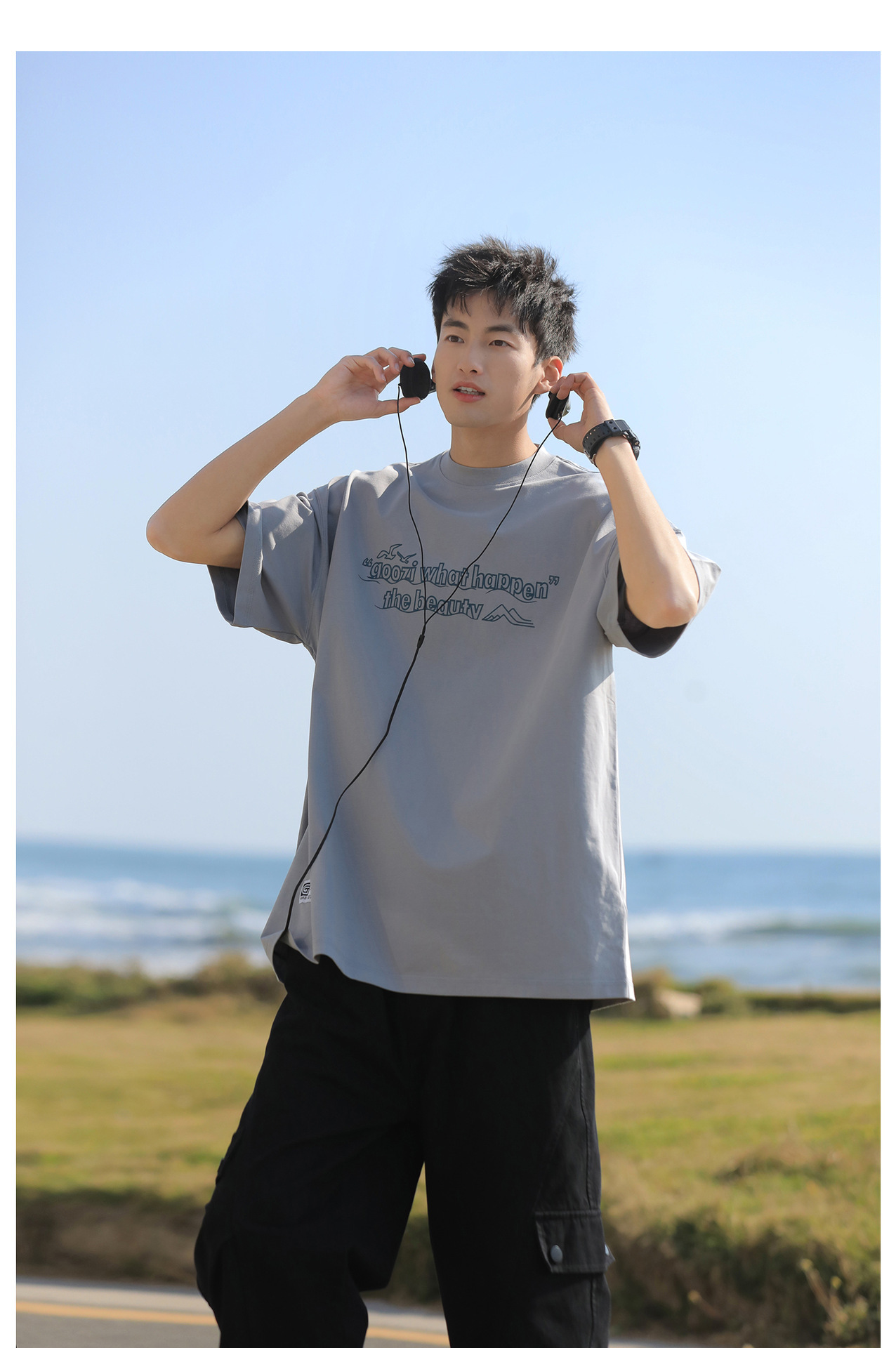 공장 직접 공급 220g 헤비 프린트 반팔 티셔츠 남성 2025 년 여름 미국 조수 라운드 넥 하프 슬리브 탑스토어 가기