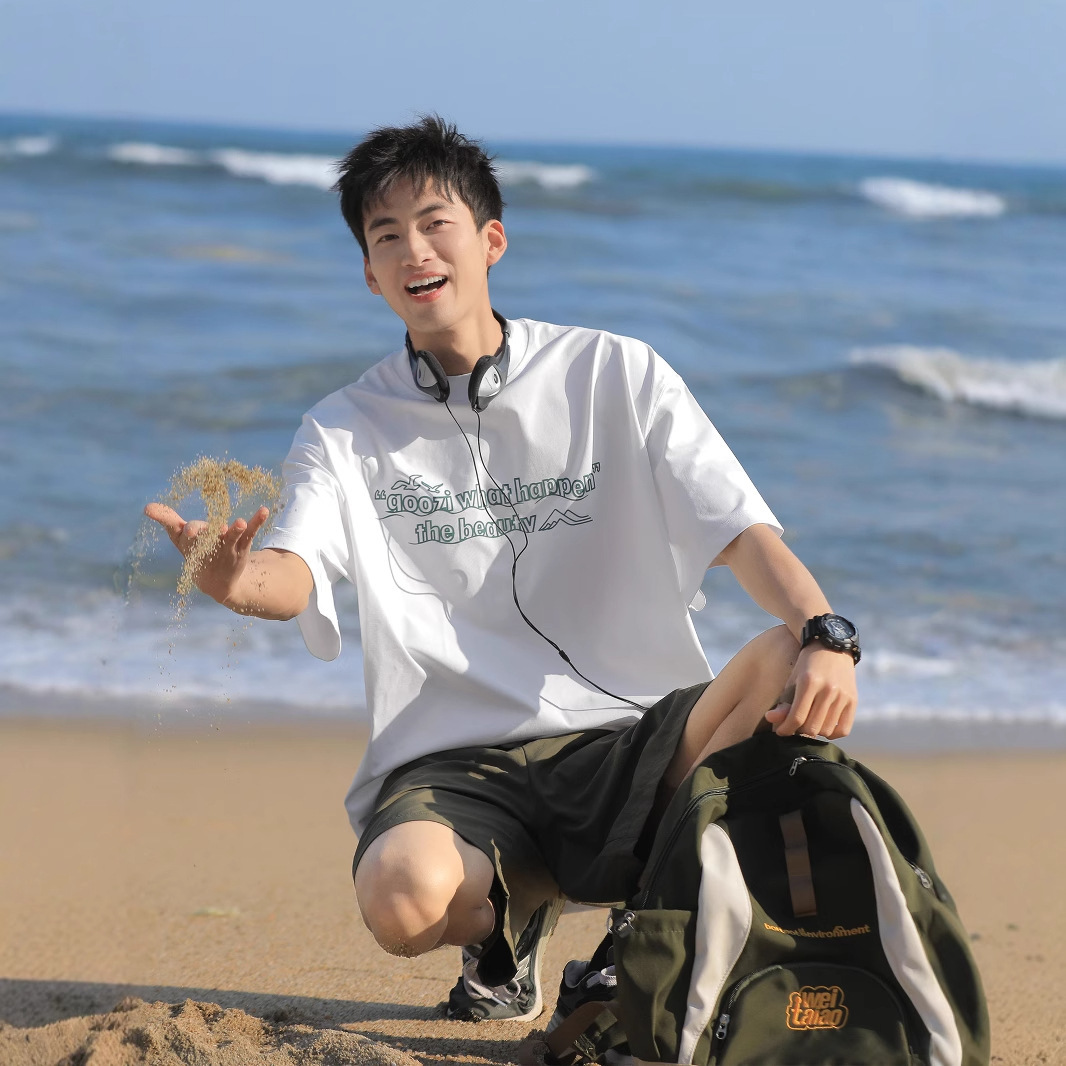 공장 직접 공급 220g 헤비 프린트 반팔 티셔츠 남성 2025 년 여름 미국 조수 라운드 넥 하프 슬리브 탑