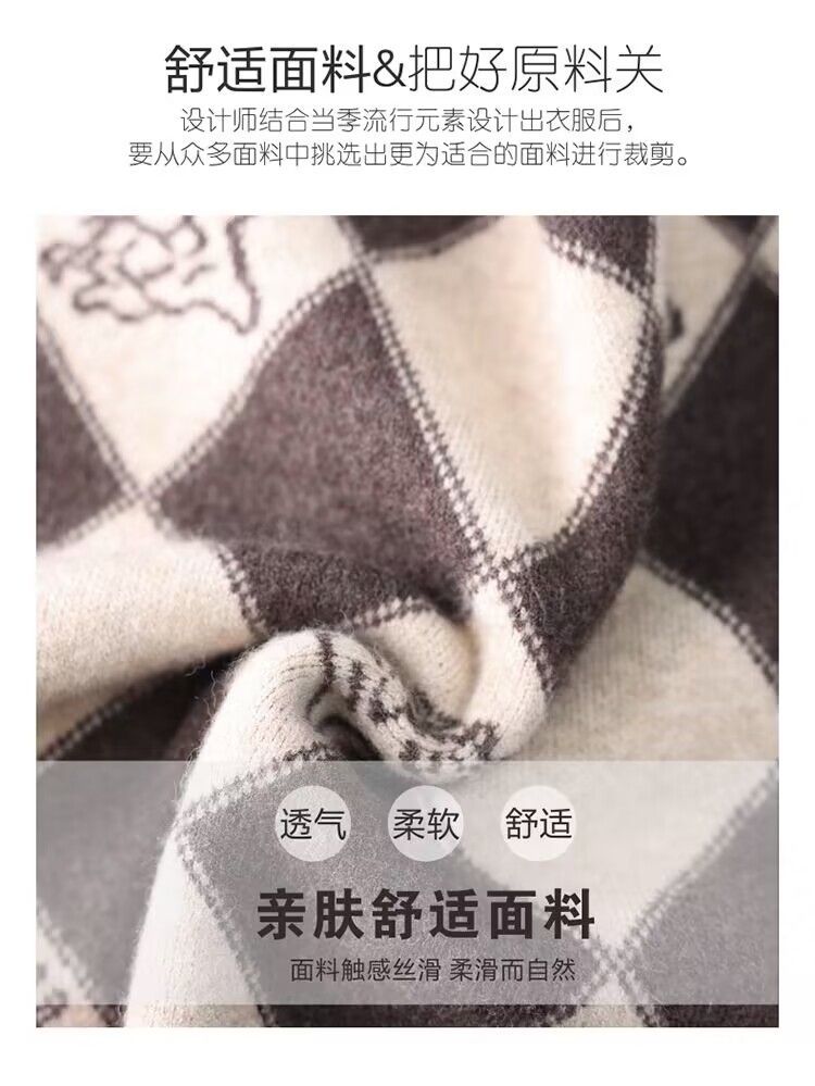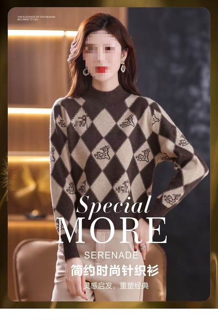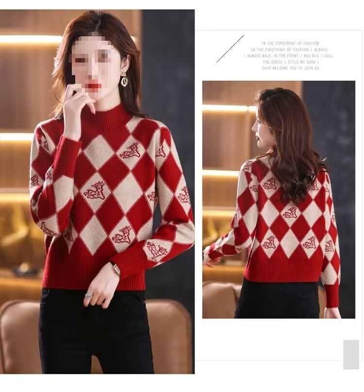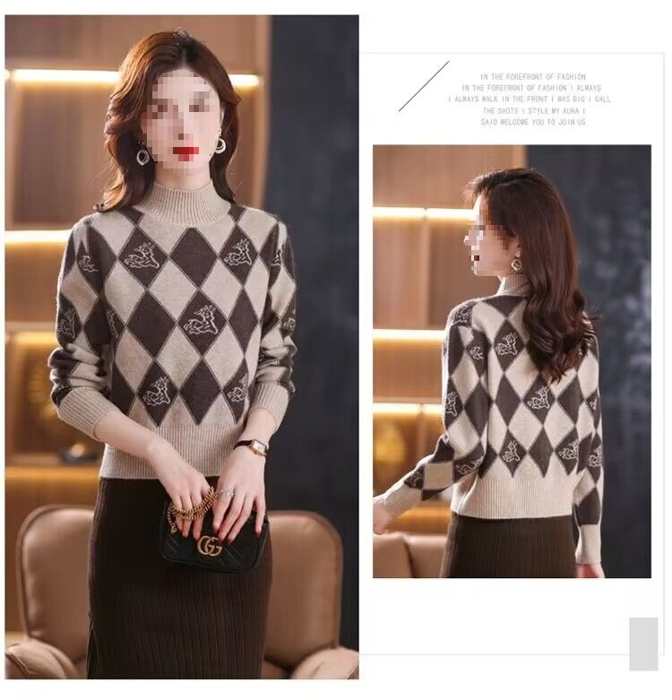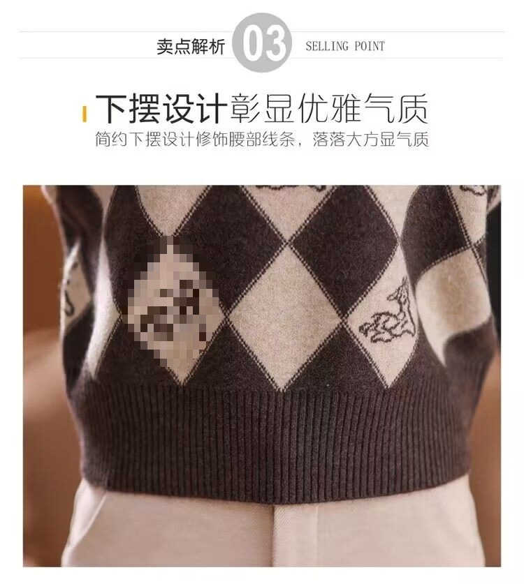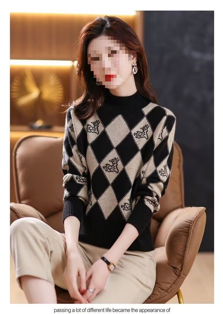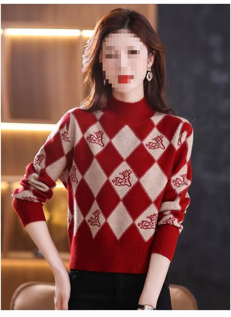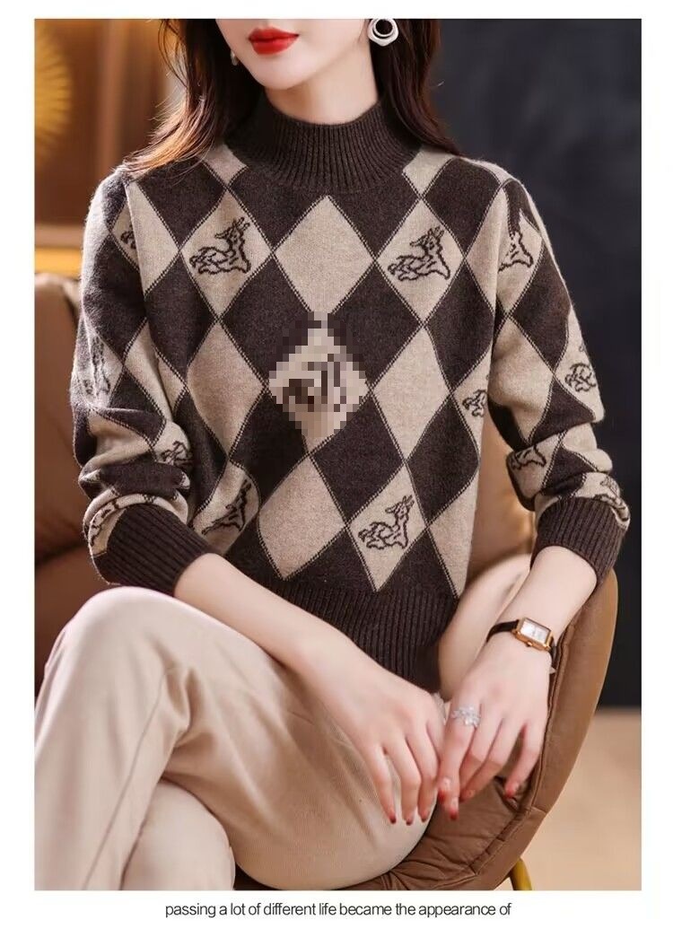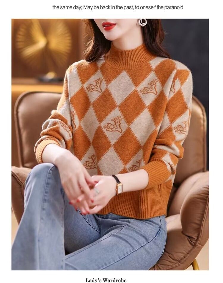 기모 두꺼운 가을과 겨울 새로운 짧은 스웨터 여성의 세련된 마름모 자카드 느슨한 니트베이스 탑