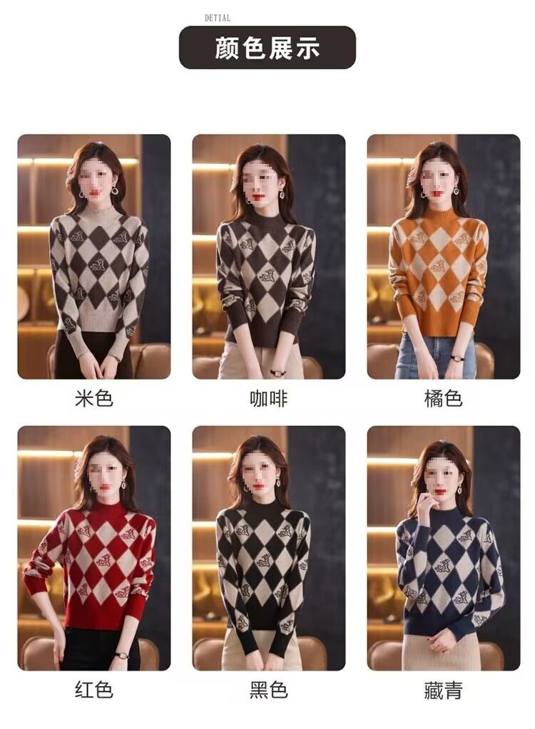 기모 두꺼운 가을과 겨울 새로운 짧은 스웨터 여성의 세련된 마름모 자카드 느슨한 니트베이스 탑스토어 가기