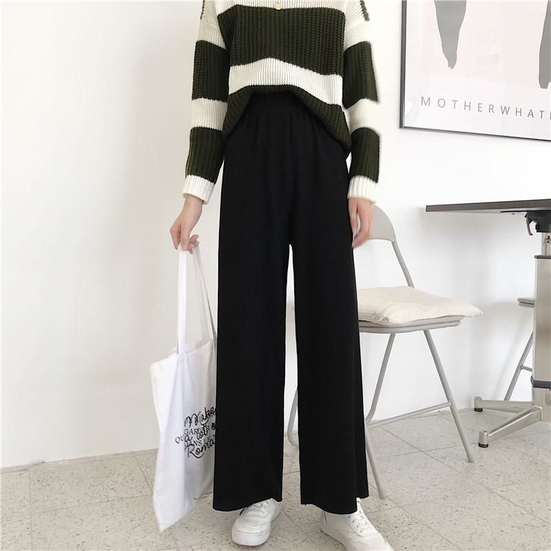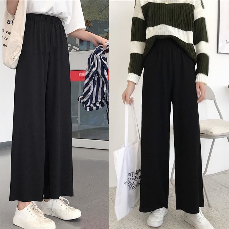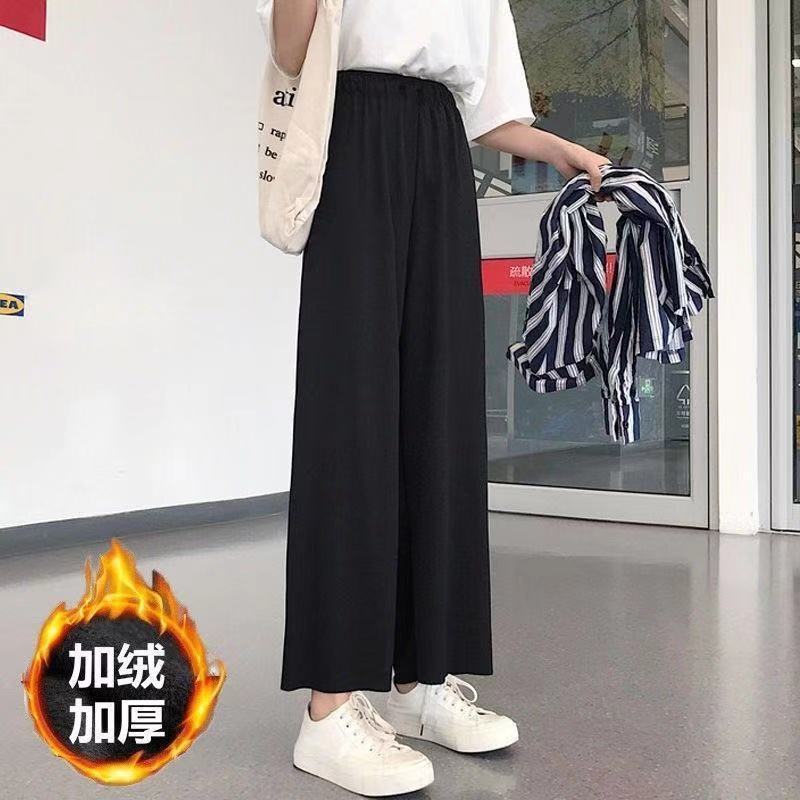 가을 겨울 바지 여자 기모 두껍게 자른 넓은 다리 바지 여학생 한국식 쇼트 블랙 스트레이트 캐주얼 올매치