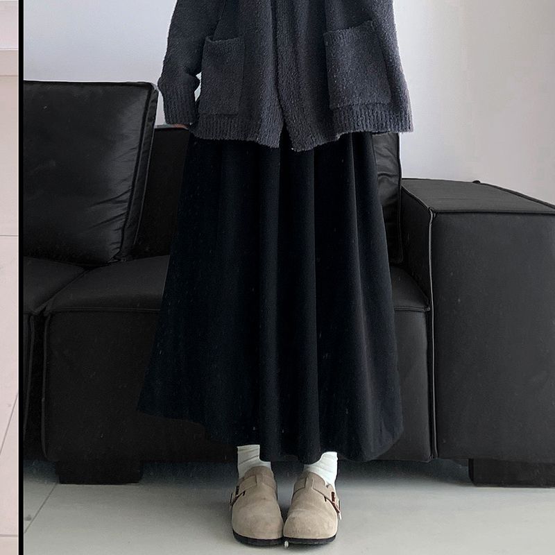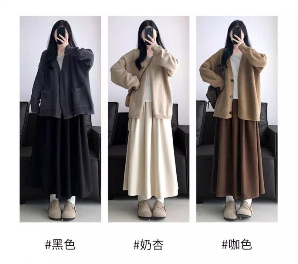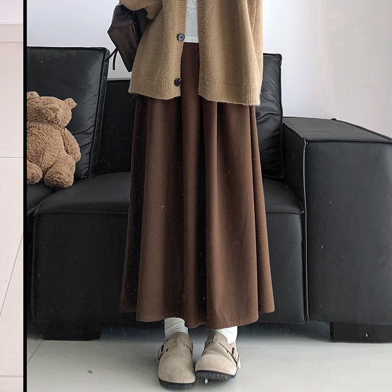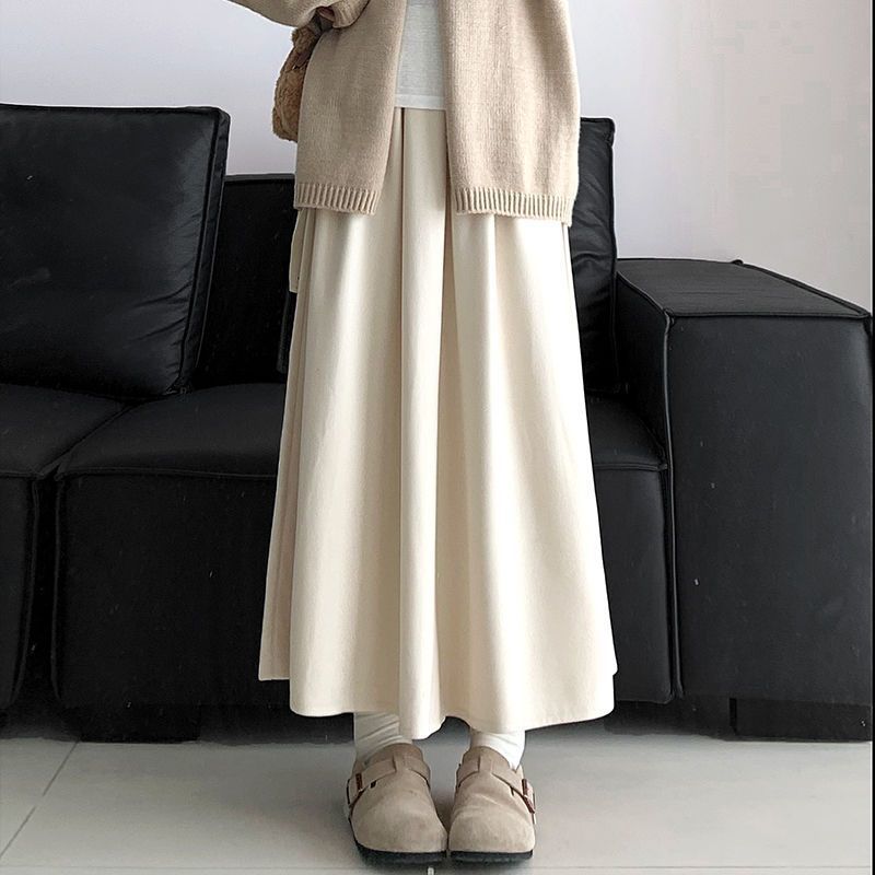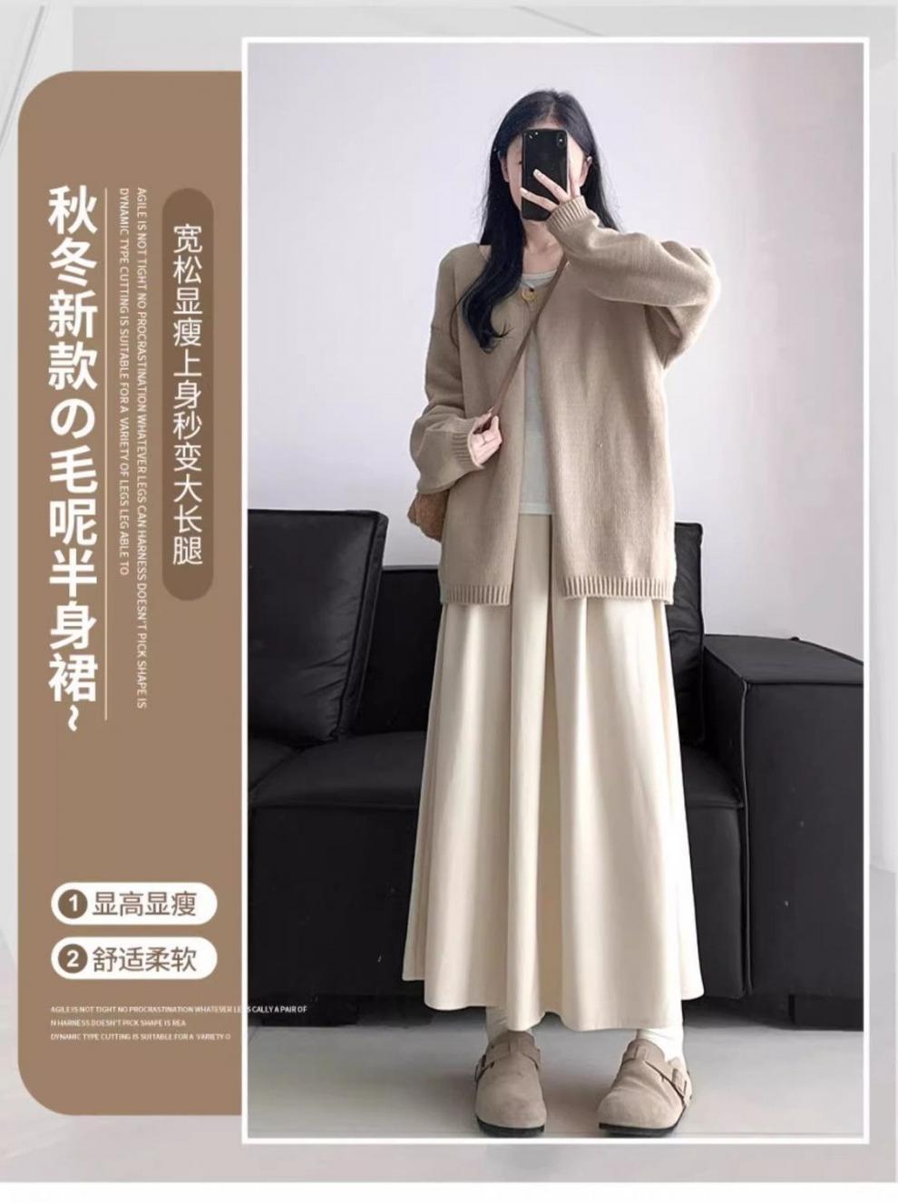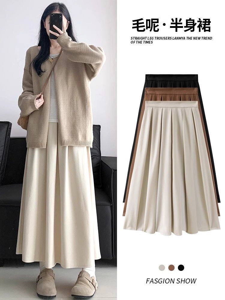모직 치마 여성 가을과 겨울 새로운 높은 허리 슬리밍 작은 A-라인 스커트 여성을위한 중간 길이의 우산 치마스토어 가기