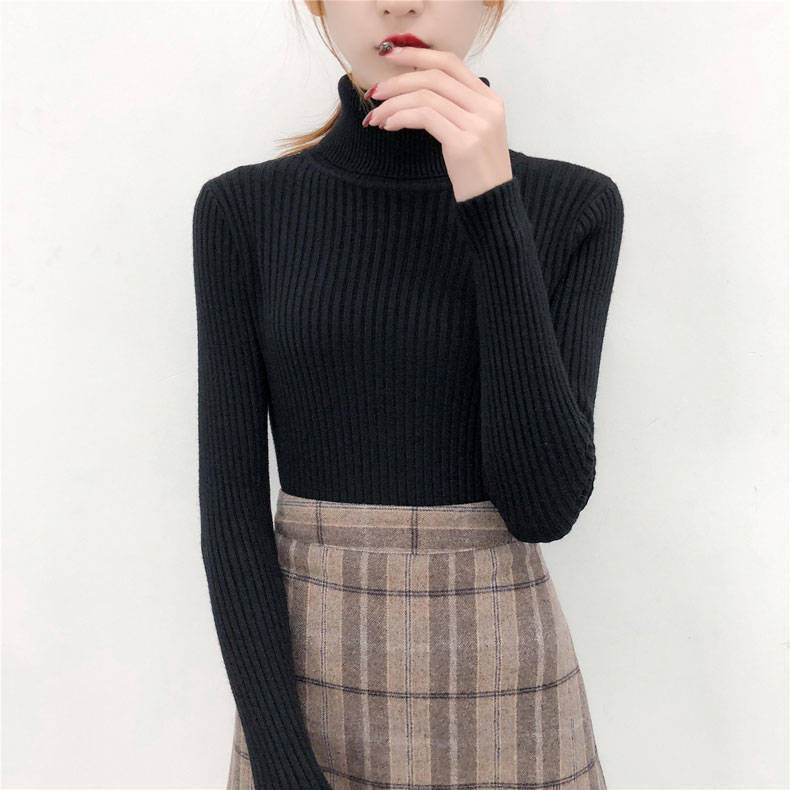 터틀넥 스웨터 여성용 핏 패턴 긴팔 가을 및 겨울 새로운 터틀넥 슬림 핏 슬리밍 인테리어 온난화 서양식 니트 베이스 셔츠스토어 가기