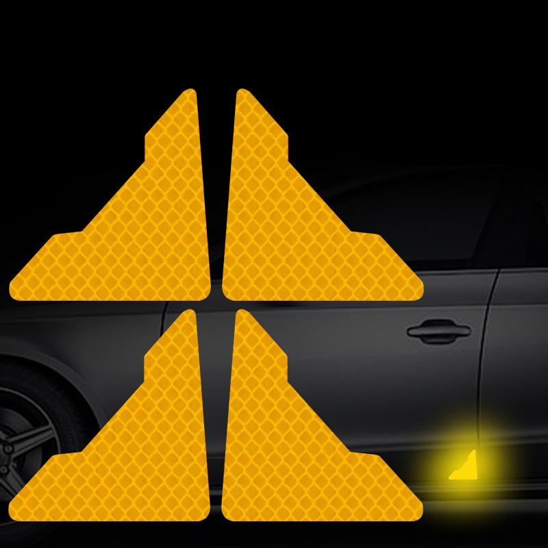 4 자동차 장식 스티커 자동차 문 충돌 방지 반사 스티커 보호 스티커 스크래치 야간 경고 스티커 다이아몬드 반사
