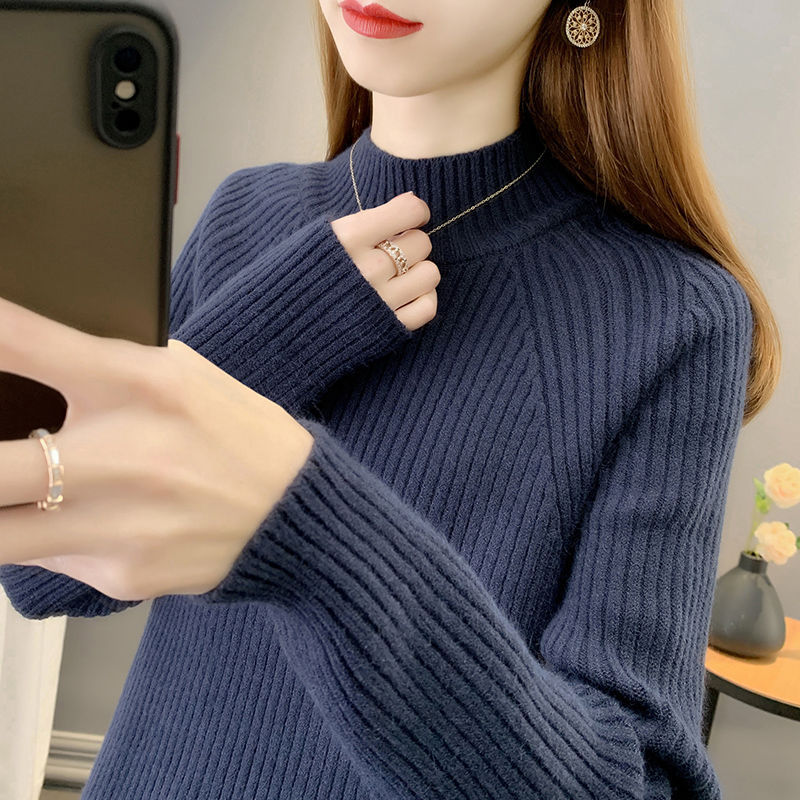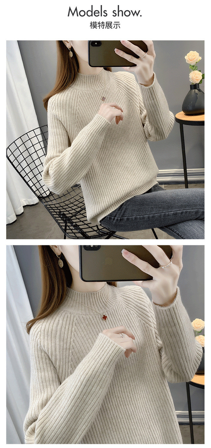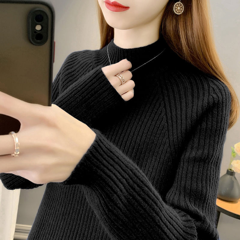 반 터틀넥 따뜻한 스웨터 여성의 가을과 겨울 새로운 두꺼운 니트 스웨터 느슨한 겨울 내부 탑베이스 셔츠스토어 가기