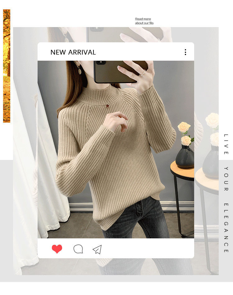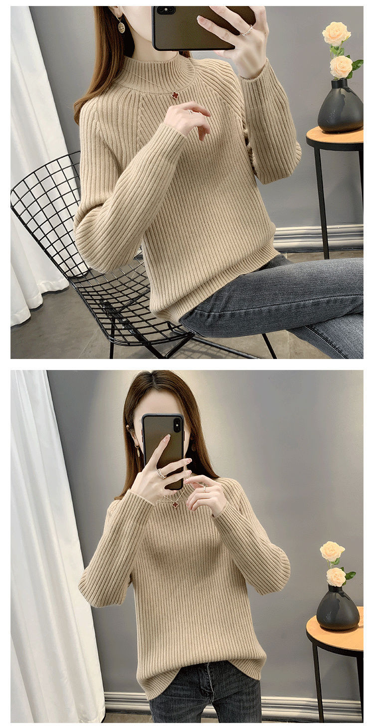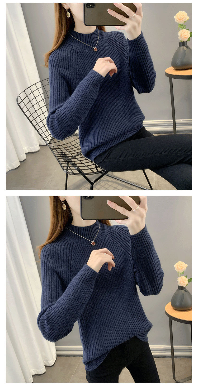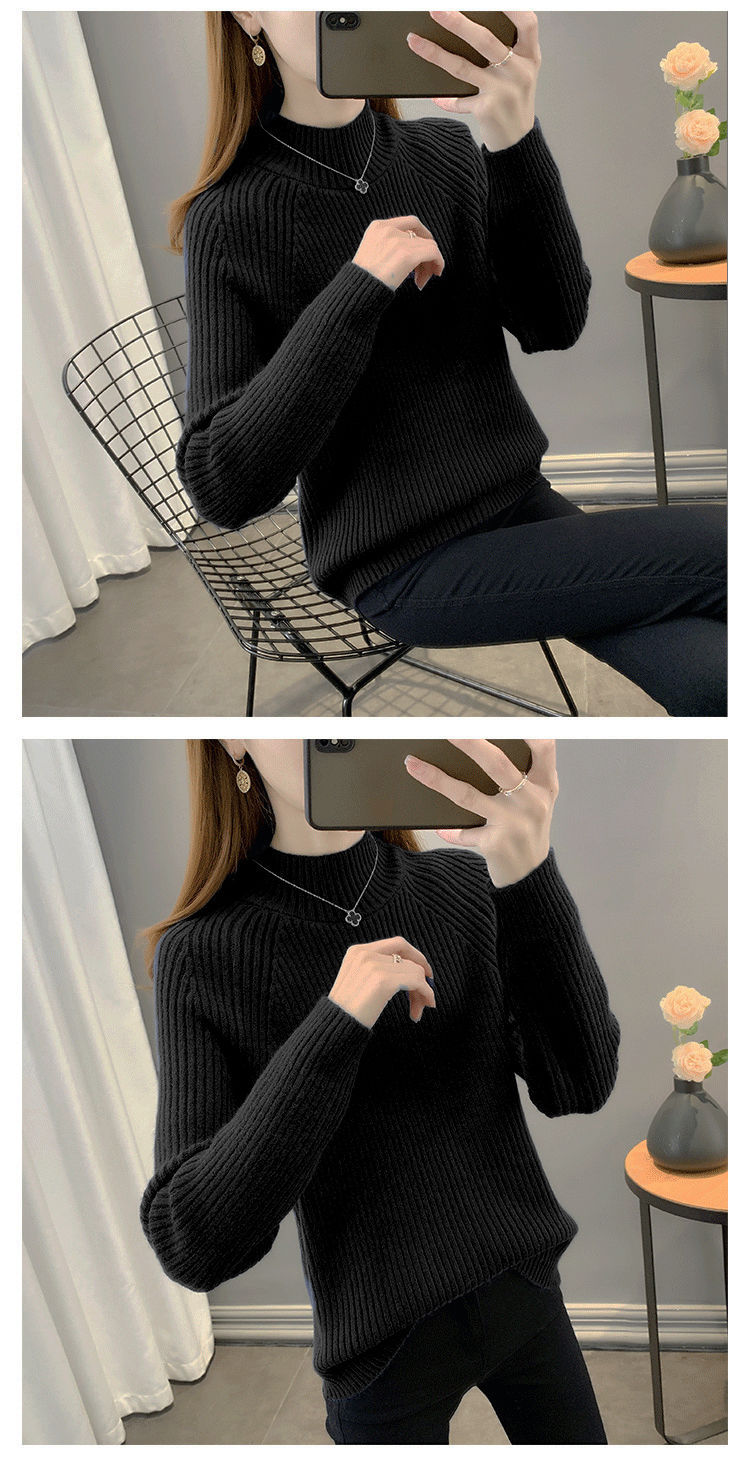 반 터틀넥 따뜻한 스웨터 여성의 가을과 겨울 새로운 두꺼운 니트 스웨터 느슨한 겨울 내부 탑베이스 셔츠