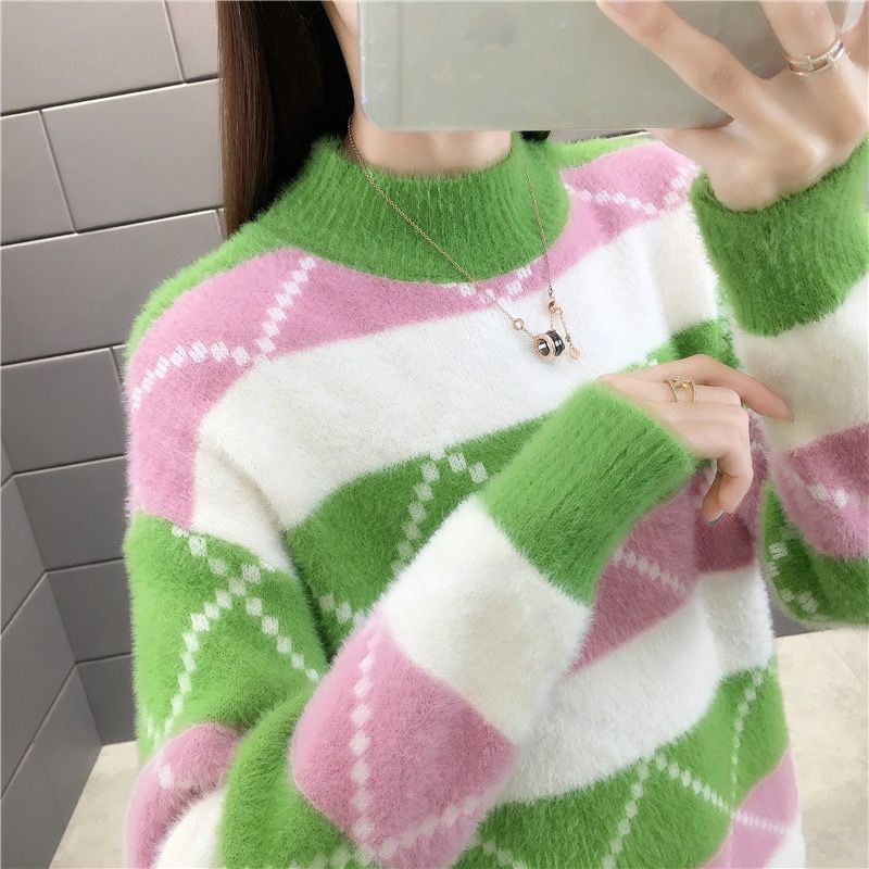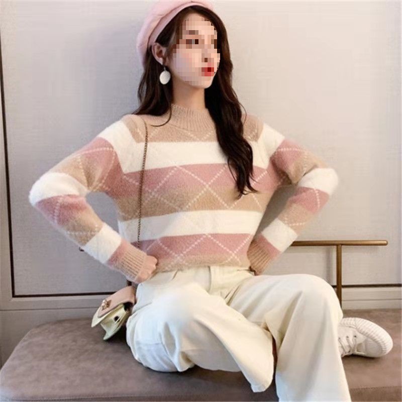 헤어 프리 모조 밍크 벨벳 세미 하이 칼라 봄과 가을 새로운 컬러 매칭 긴 소매 니트 베이스 셔츠스토어 가기