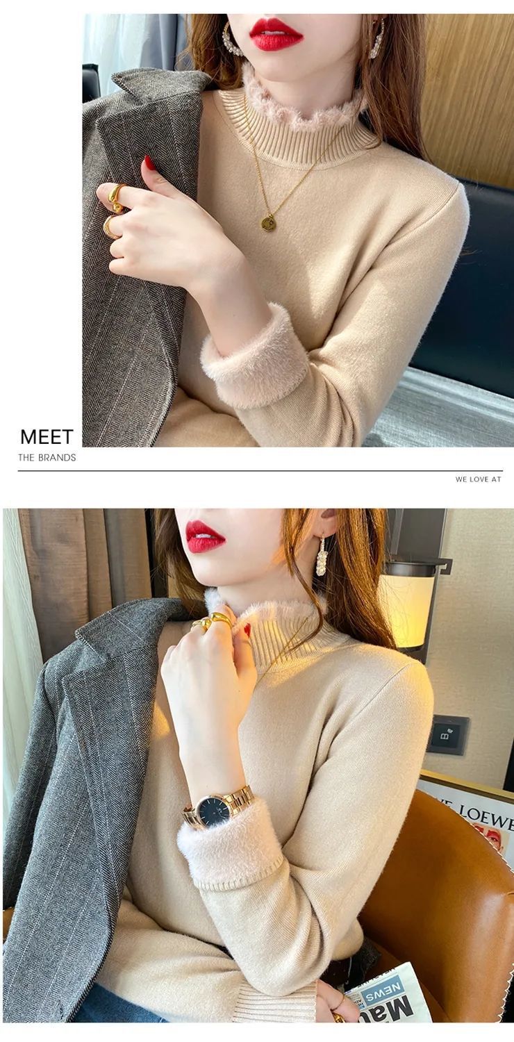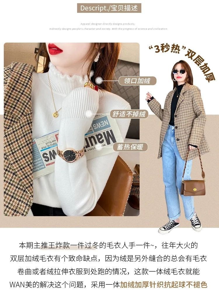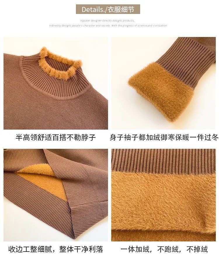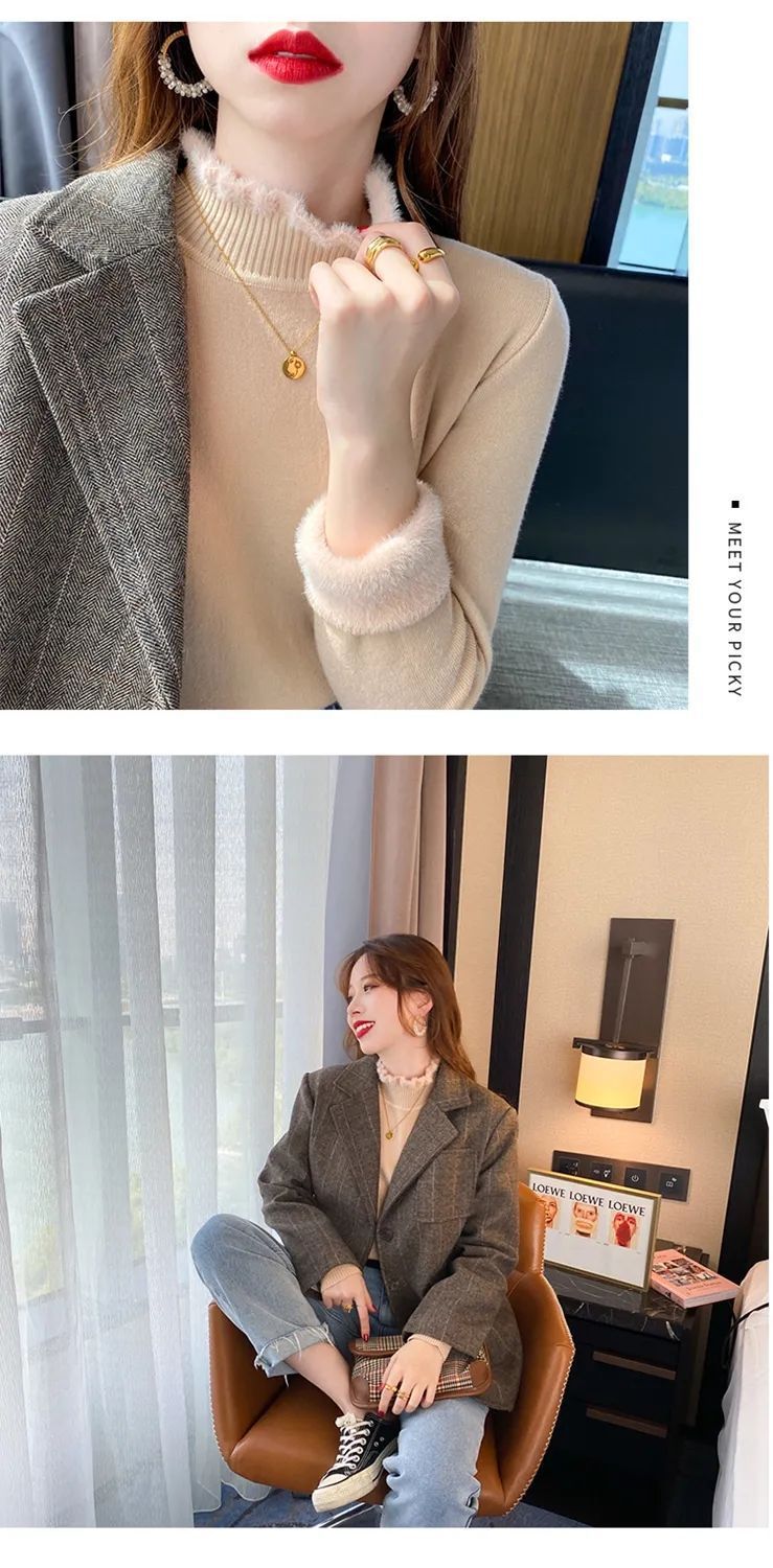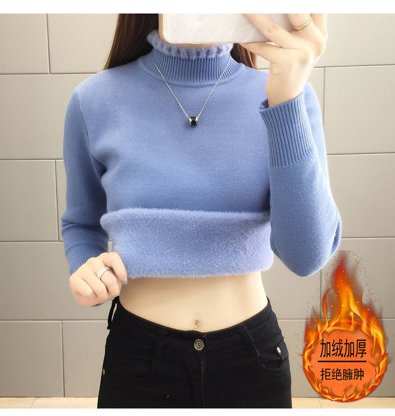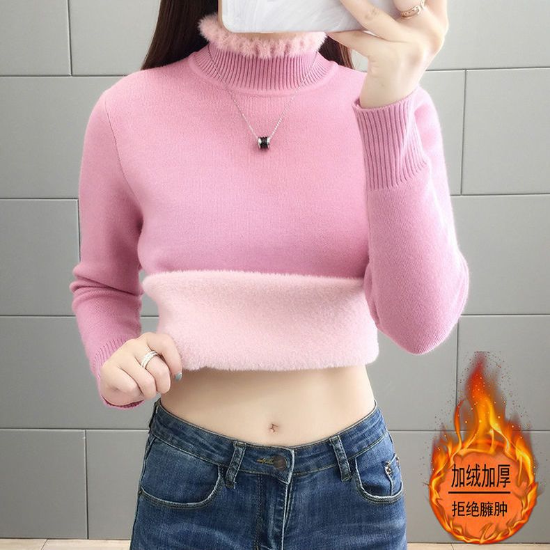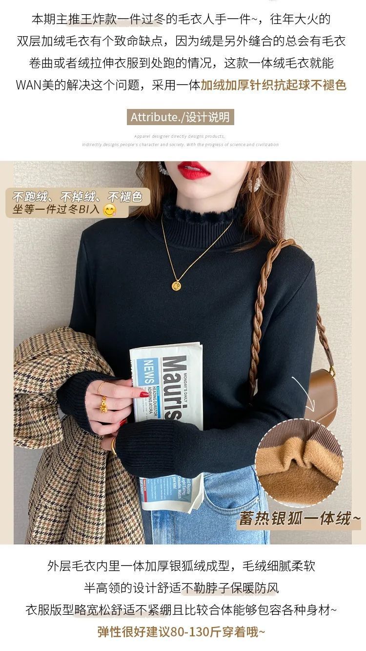 하이 퀄리티 원피스 벨벳 스웨터 여자 겨울 기모 외복을위한 새로운 하프 하이 넥 따뜻한 올 매치베이스 셔츠스토어 가기