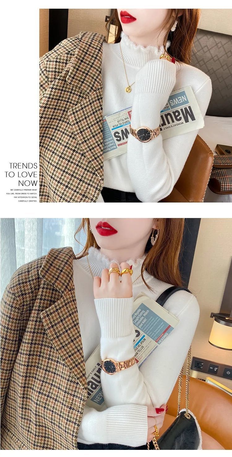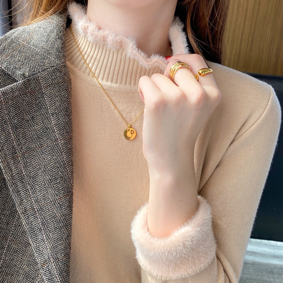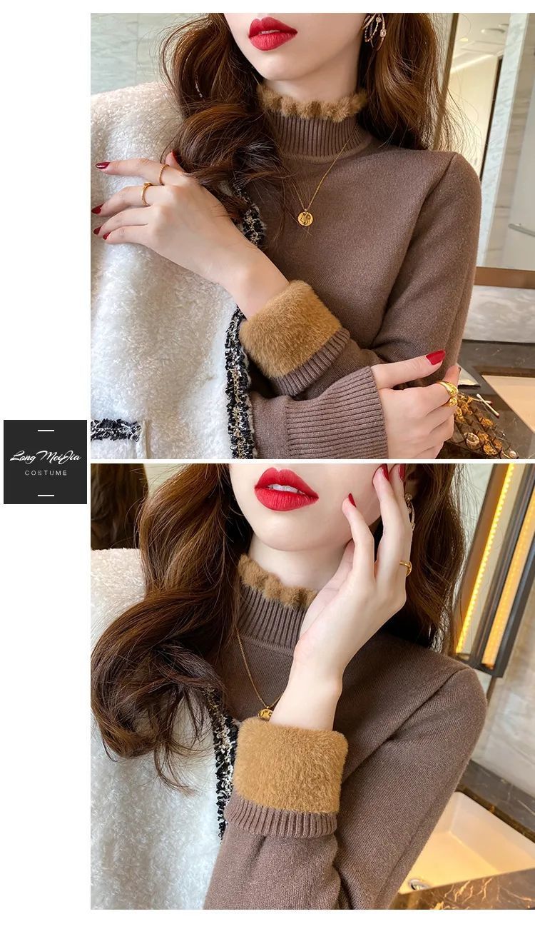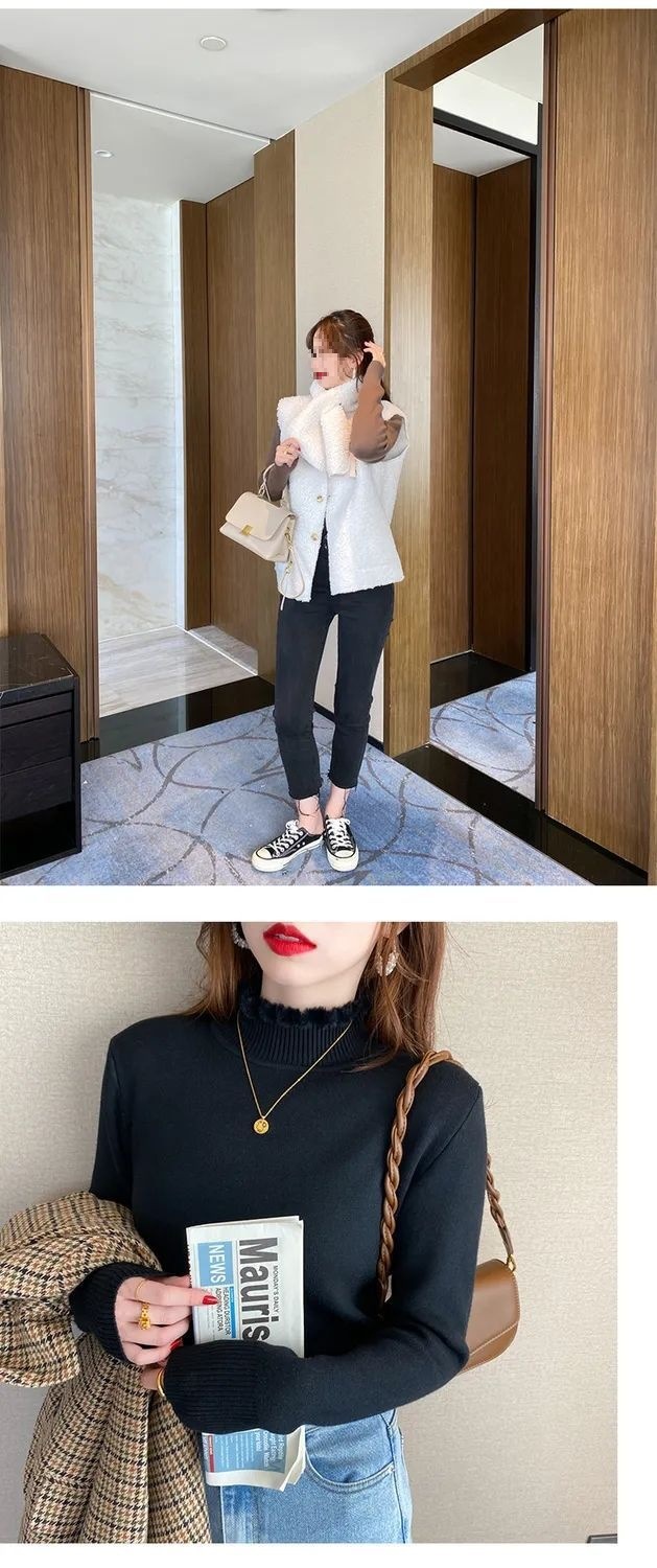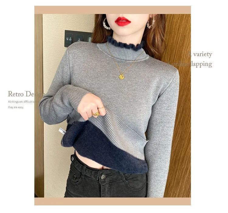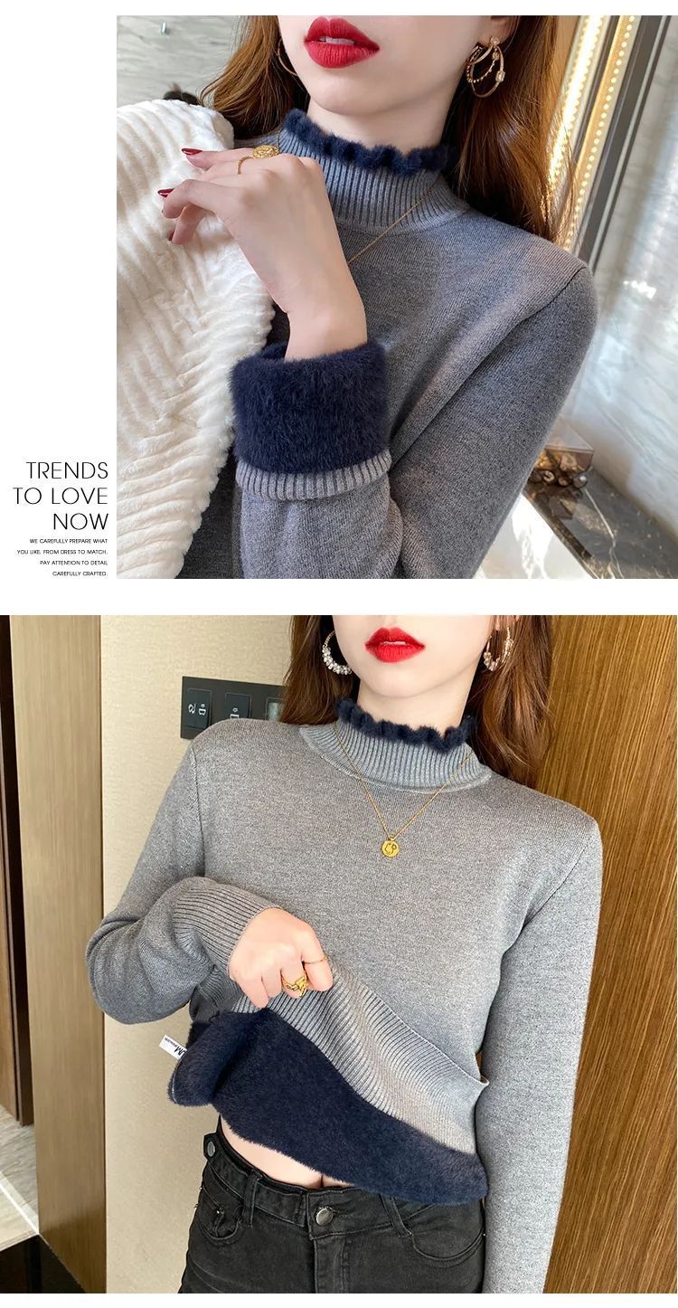 하이 퀄리티 원피스 벨벳 스웨터 여자 겨울 기모 외복을위한 새로운 하프 하이 넥 따뜻한 올 매치베이스 셔츠스토어 가기