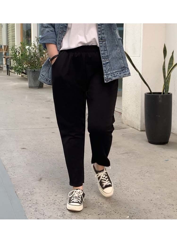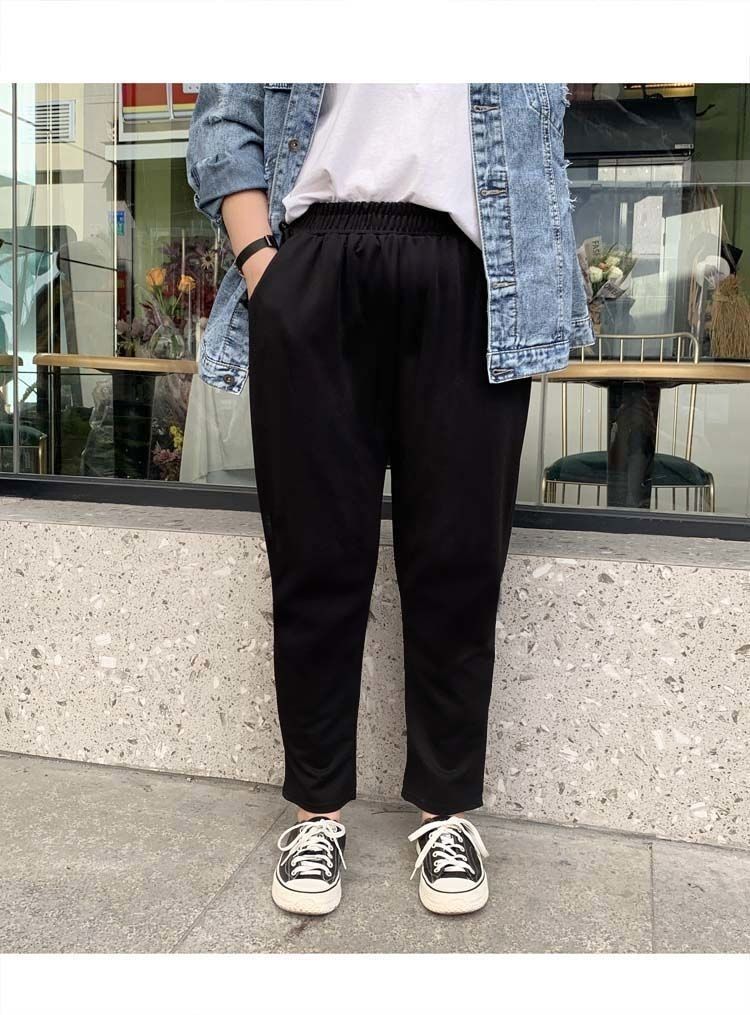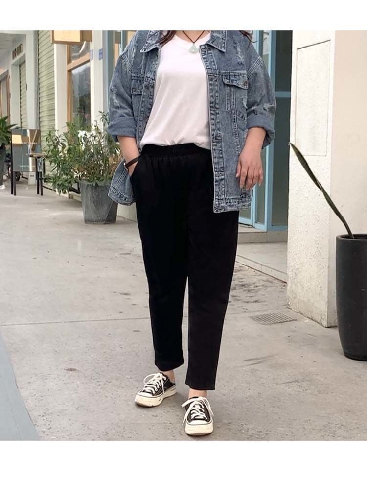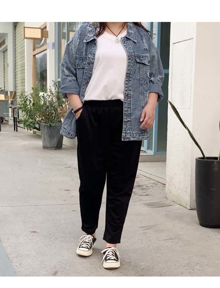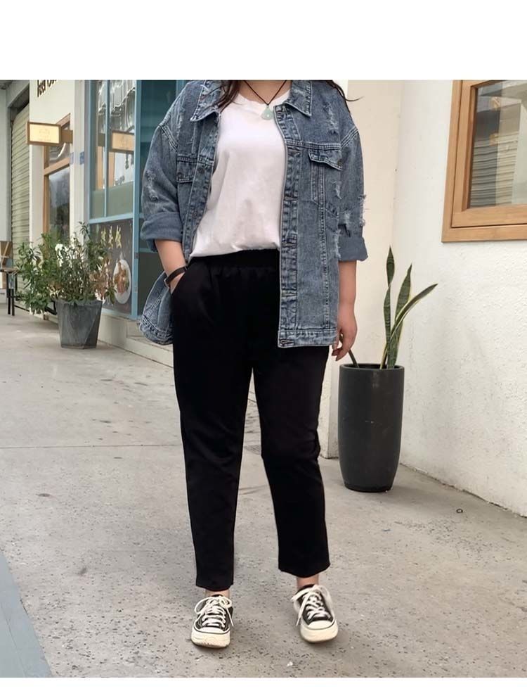진 느슨한 플러스 사이즈 바지 진 봄과 가을 할란 바지 슬림 여성 바지 통통녀 자른 바지 두꺼운 다리 슬림 바지스토어 가기