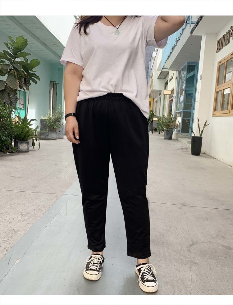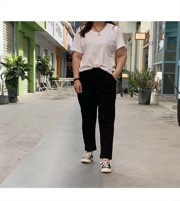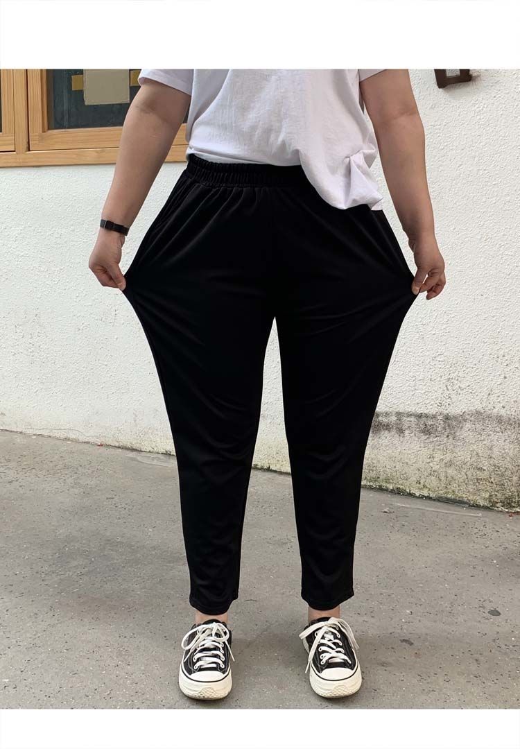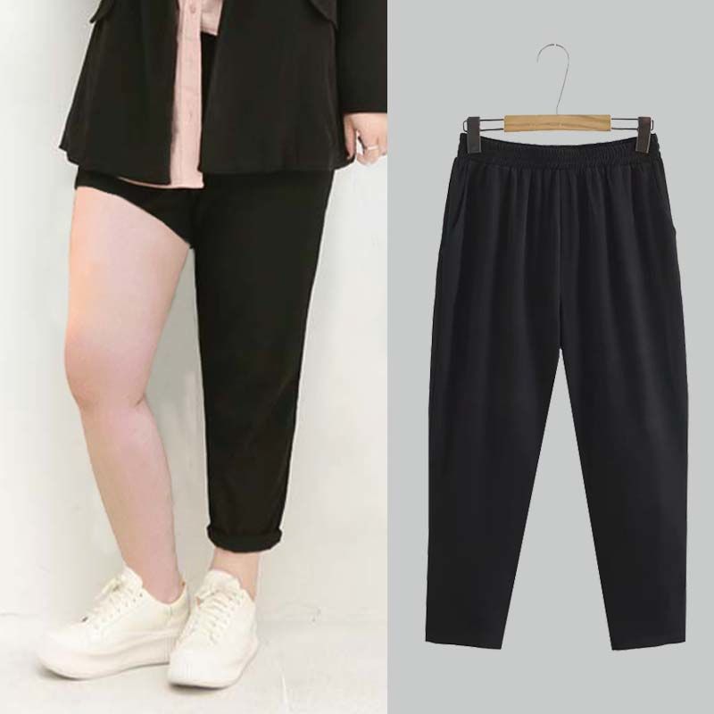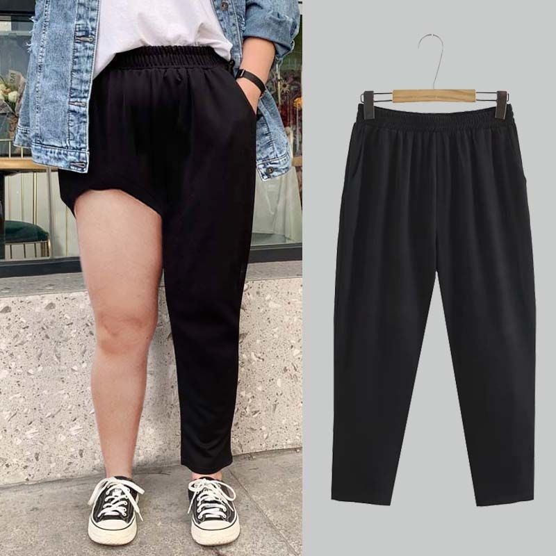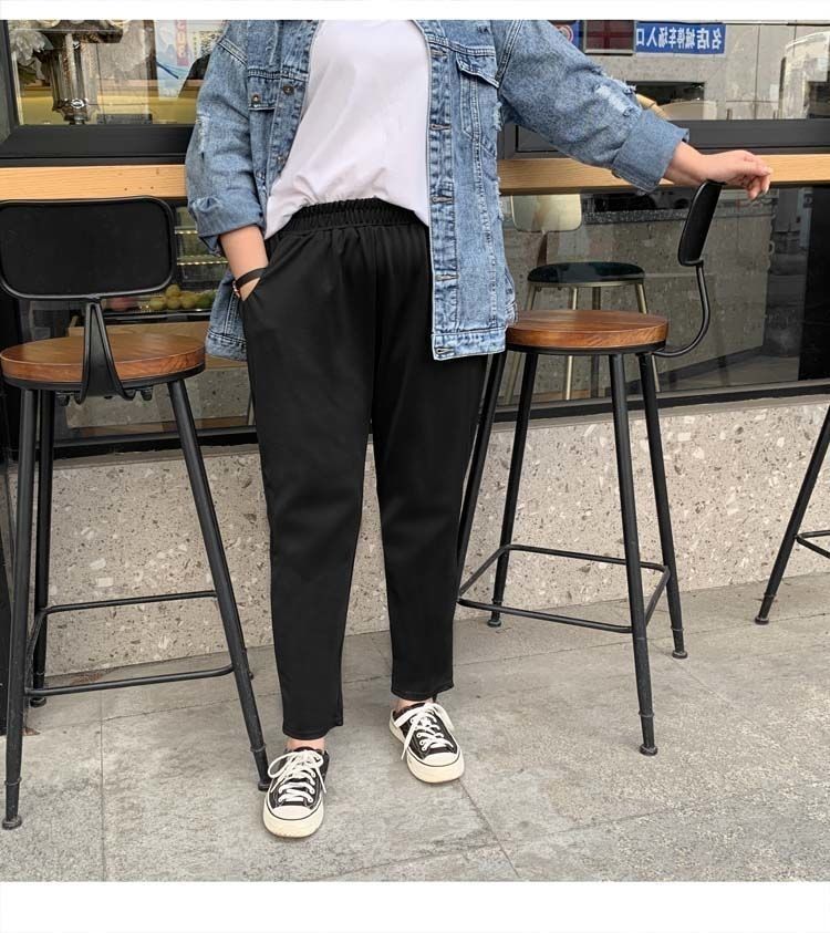 진 느슨한 플러스 사이즈 바지 진 봄과 가을 할란 바지 슬림 여성 바지 통통녀 자른 바지 두꺼운 다리 슬림 바지
