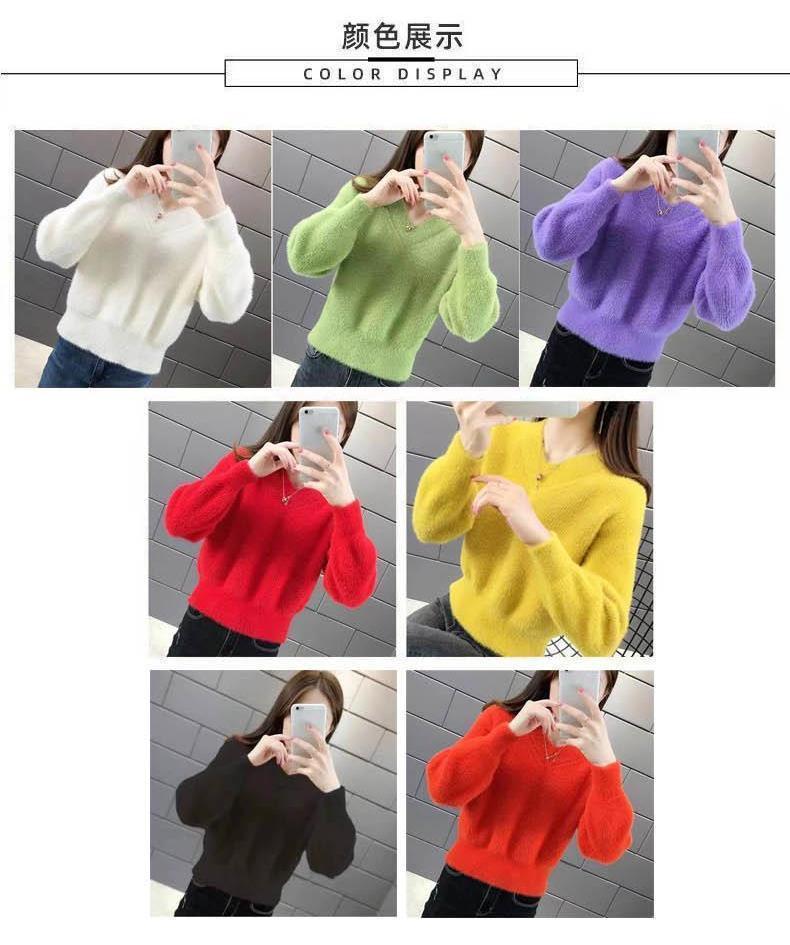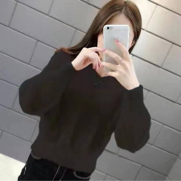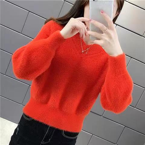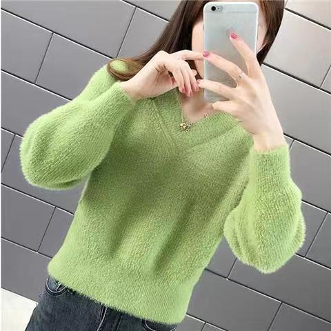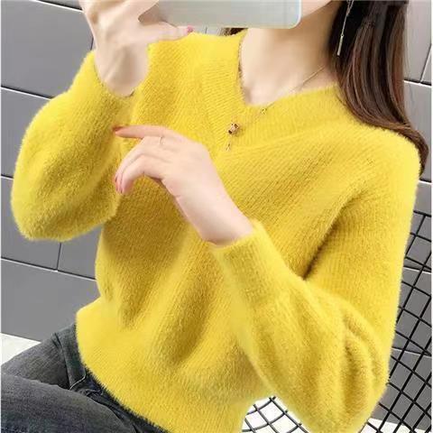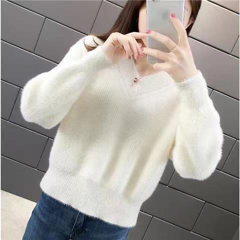 니트 베이스 레이어 셔츠 새 스웨터 여성용 느슨한 백 스타일 스타일링 치킨 하트 칼라 풀오버 밍크 벨벳