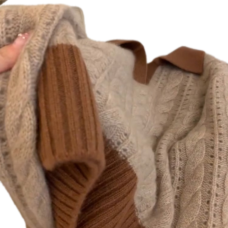 올 매치 가을과 겨울 루즈 플로 칼라 할로우 아웃 니트 스웨터 대비 여성 게으른 스타일 소프트 왁스 스웨터베이스 레이어 셔츠