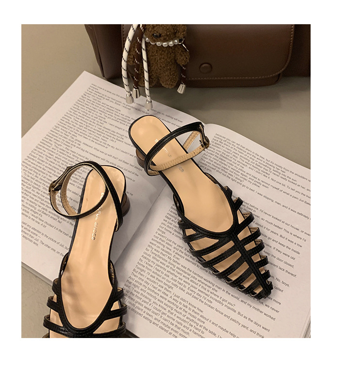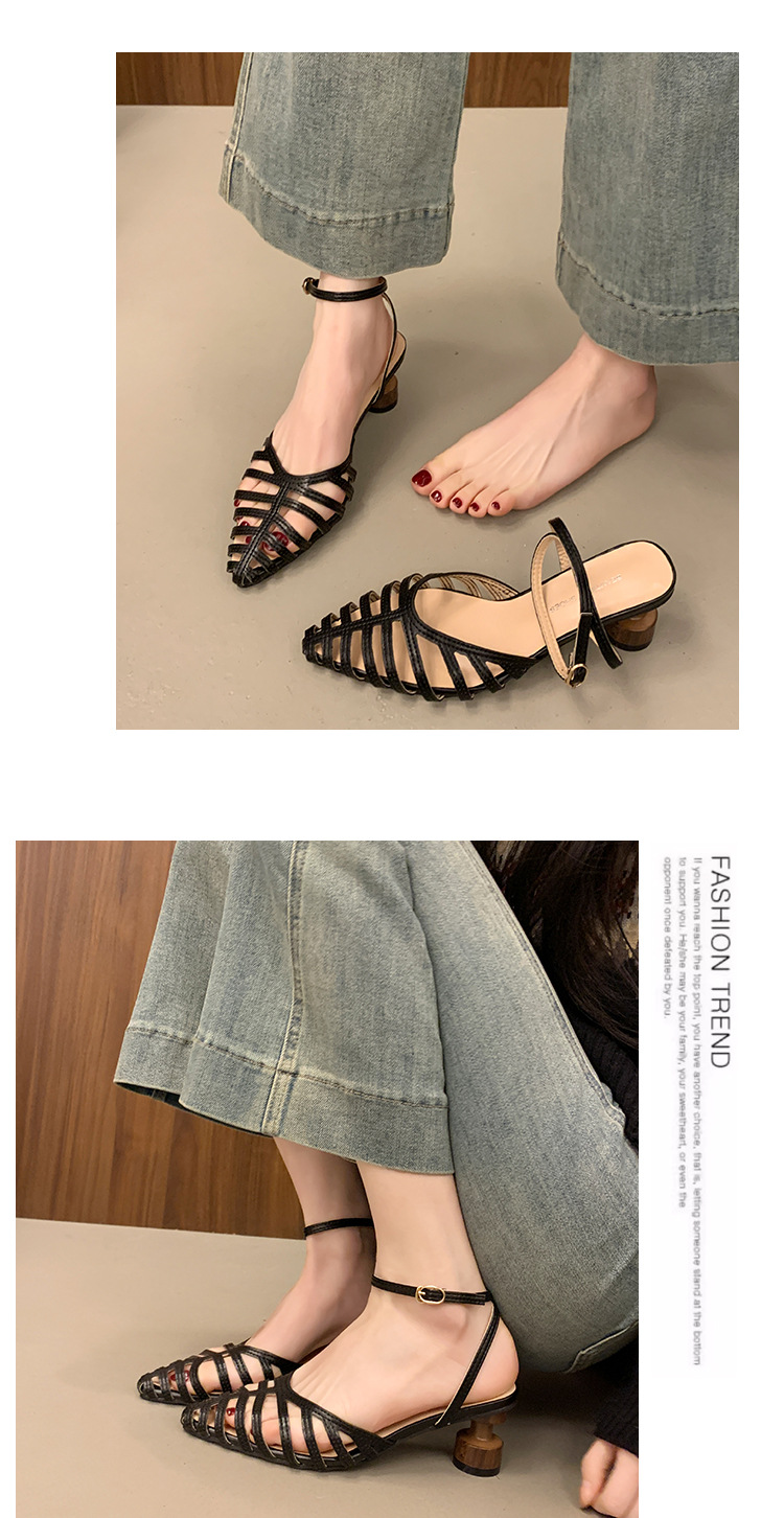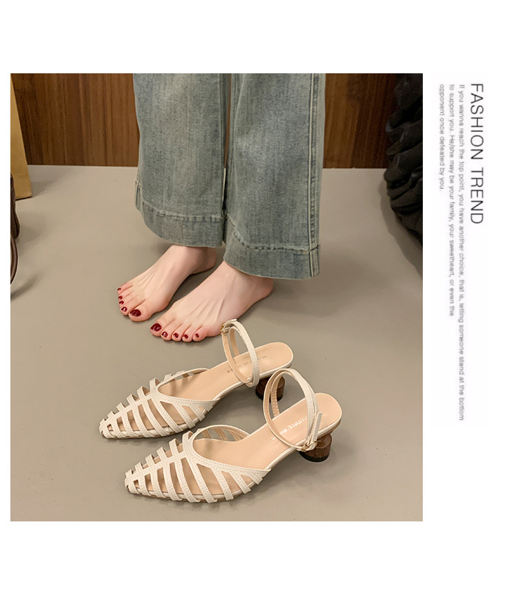 2025 봄 여름 신상 샌들 여성 복고풍 뾰족한 속이 빈 버클 샌들 바오터우 패션 샌들
