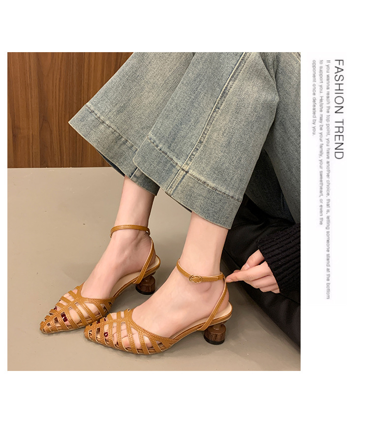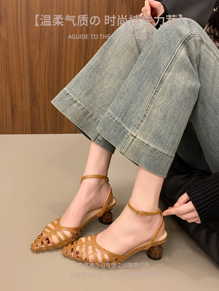 2025 봄 여름 신상 샌들 여성 복고풍 뾰족한 속이 빈 버클 샌들 바오터우 패션 샌들스토어 가기