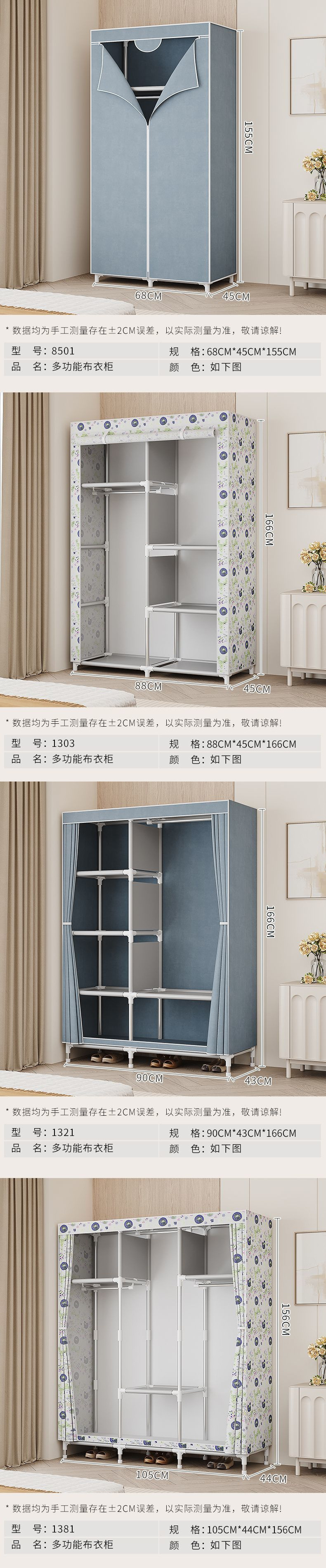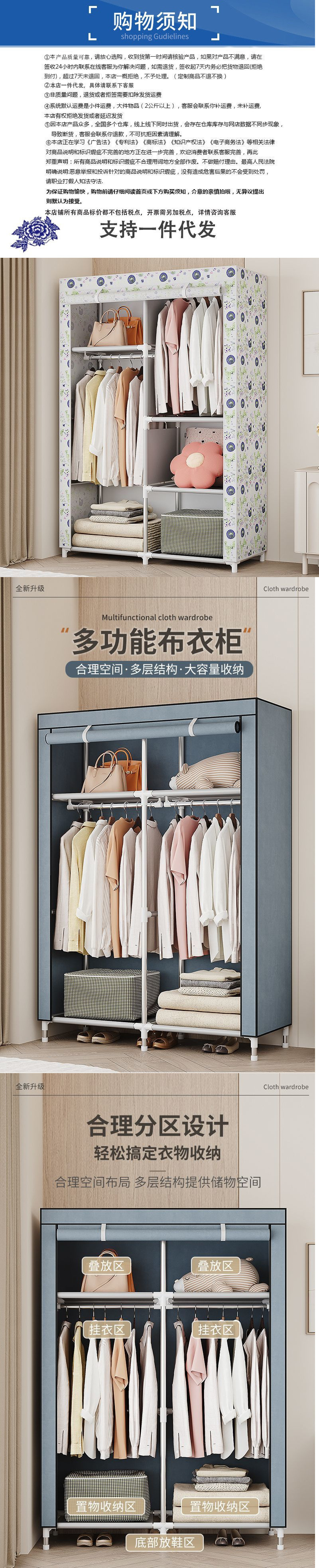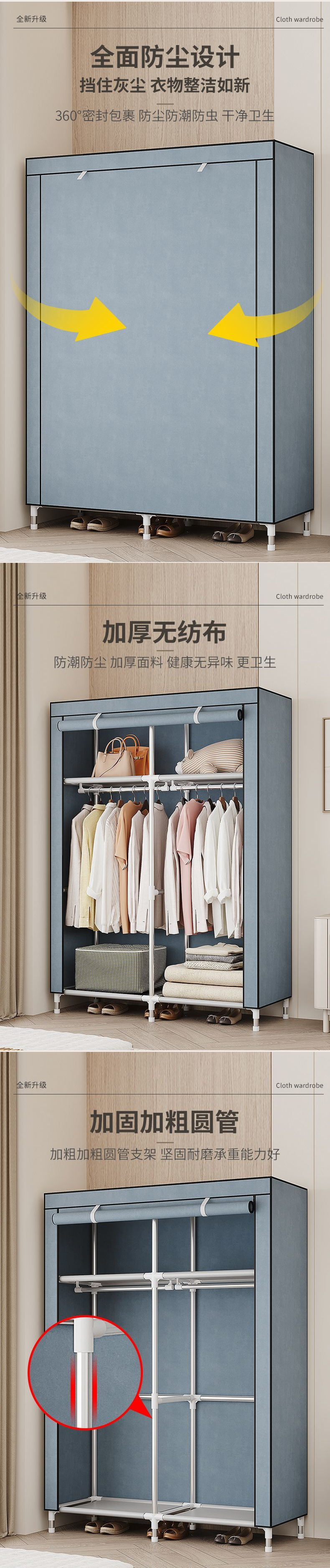 간단한 천 옷장 가정용 침실 간단한 옷장 임대 방 강력하고 튼튼한 조립 옷장 바닥 옷걸이