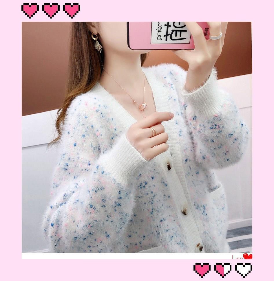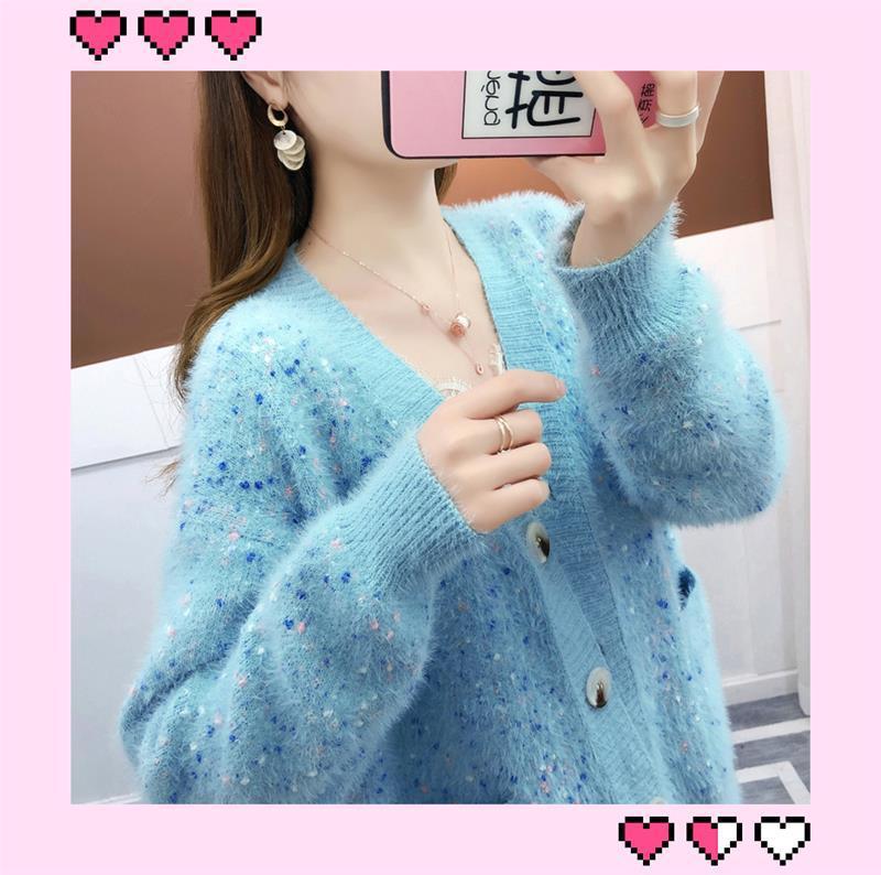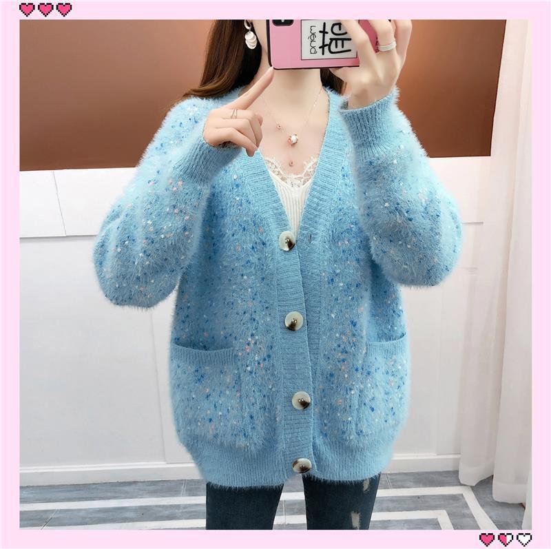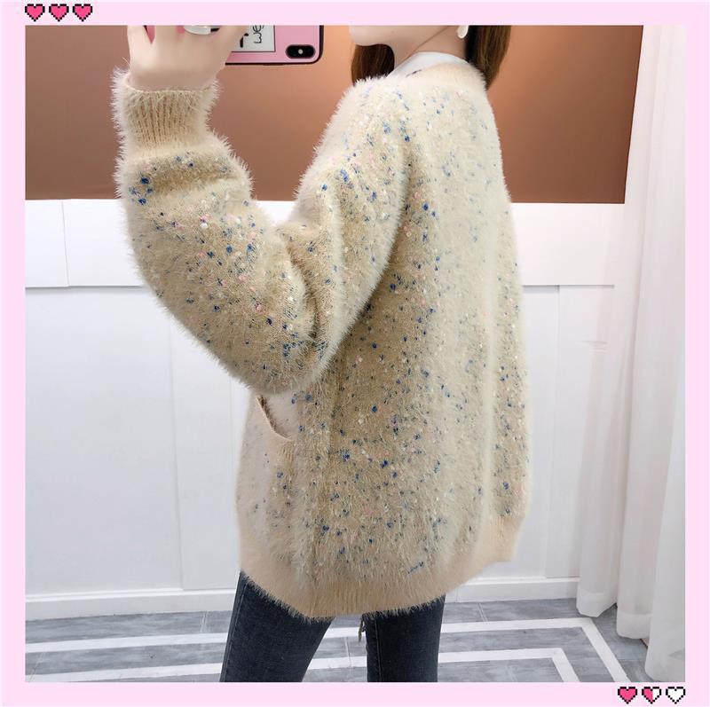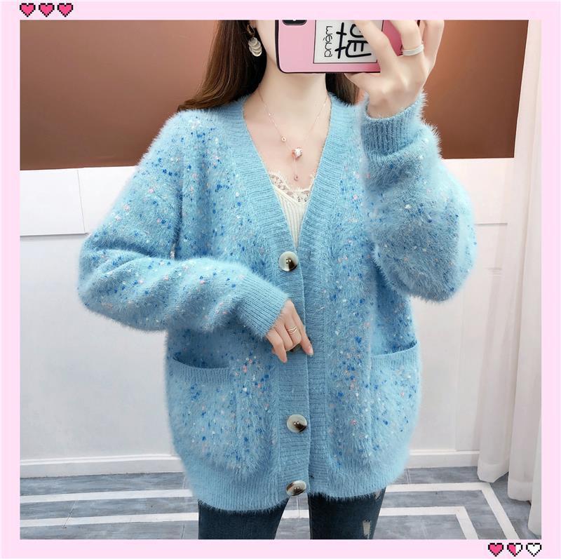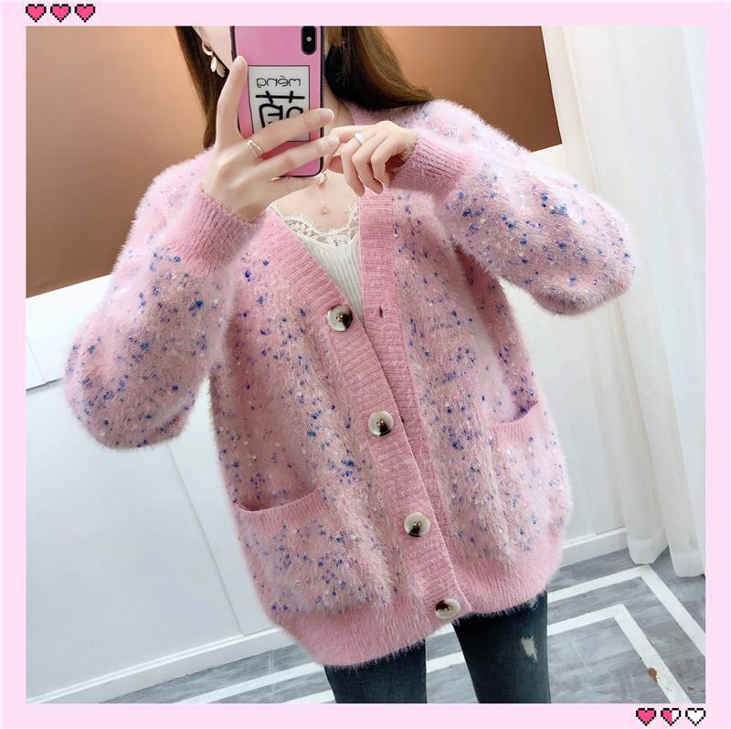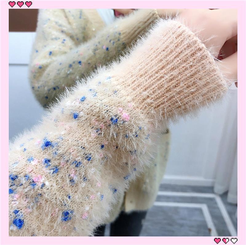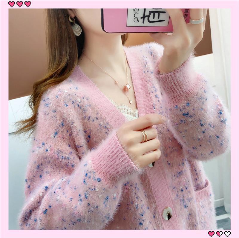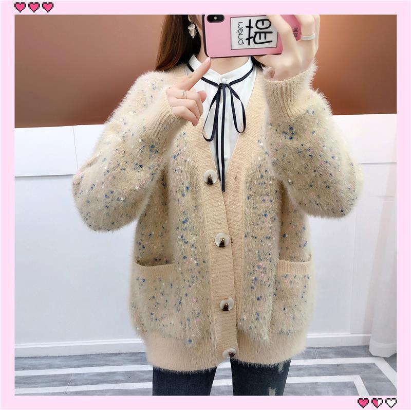 가을과 겨울 새로운 모방 밍크 벨벳 니트 카디건 여성용 한국식 탑 루즈 두꺼운 스웨터 재킷스토어 가기