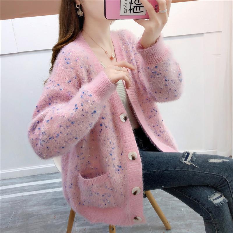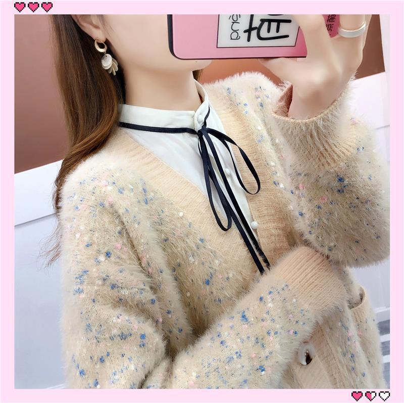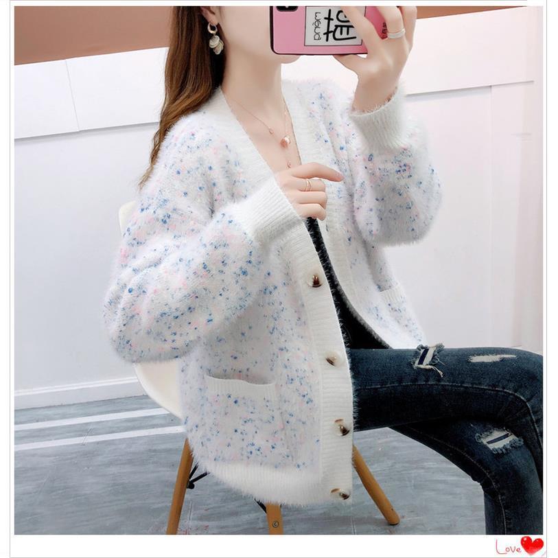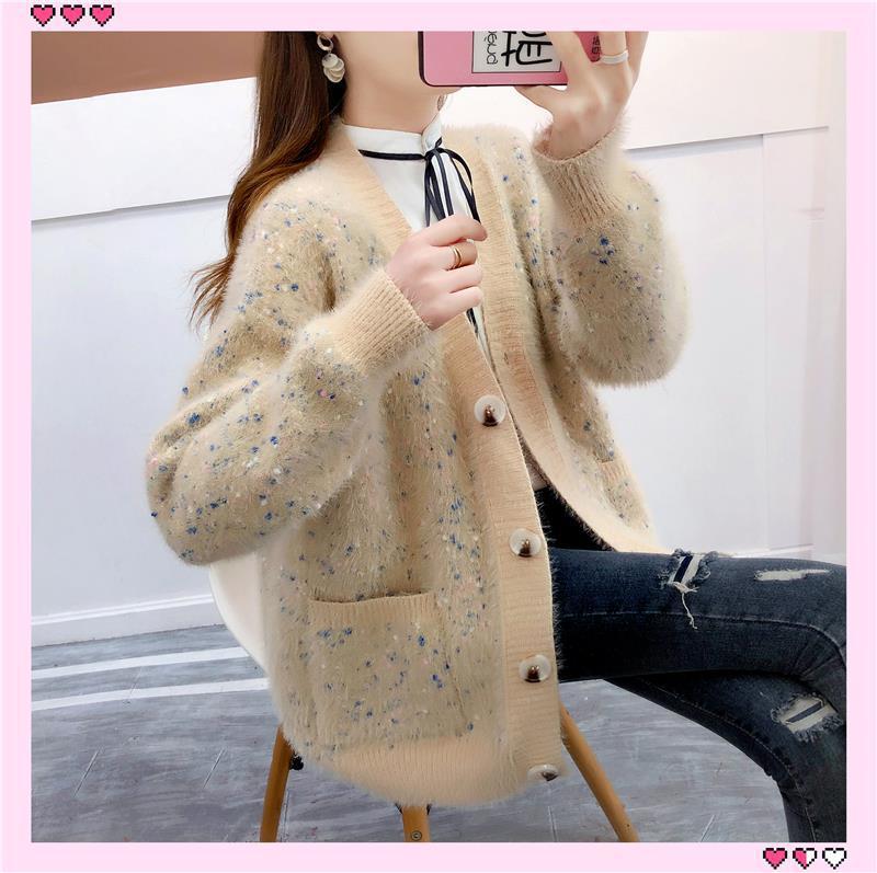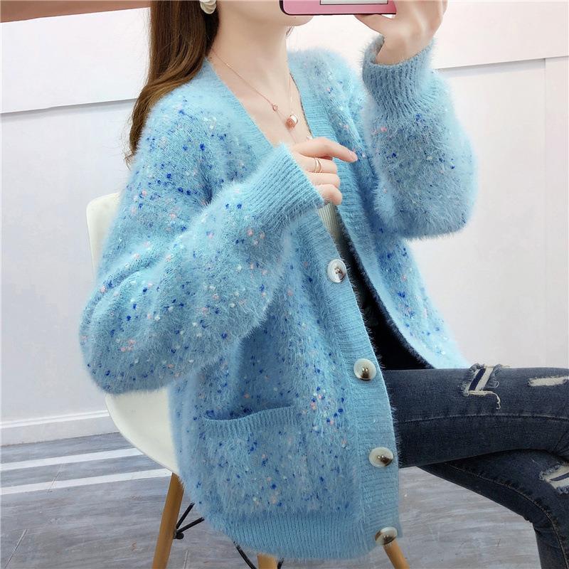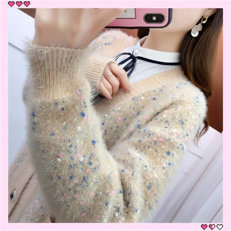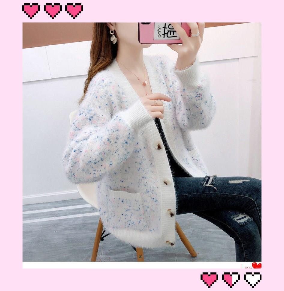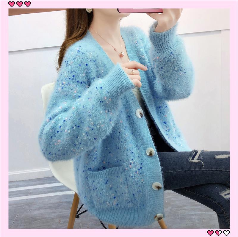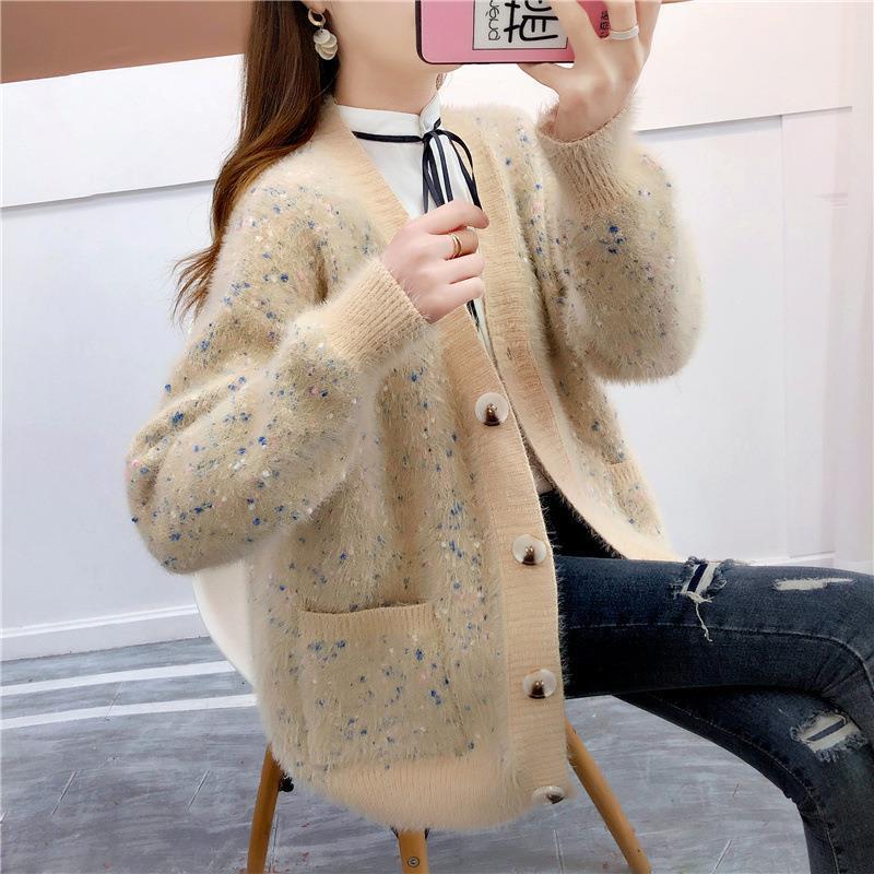 가을과 겨울 새로운 모방 밍크 벨벳 니트 카디건 여성용 한국식 탑 루즈 두꺼운 스웨터 재킷스토어 가기