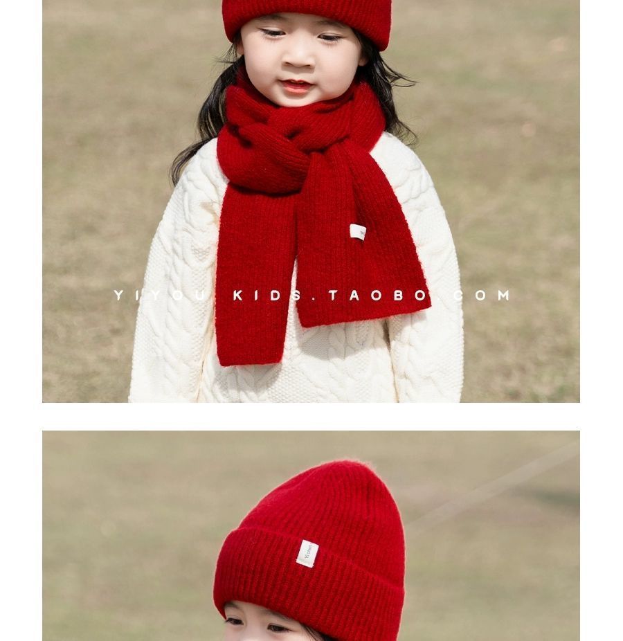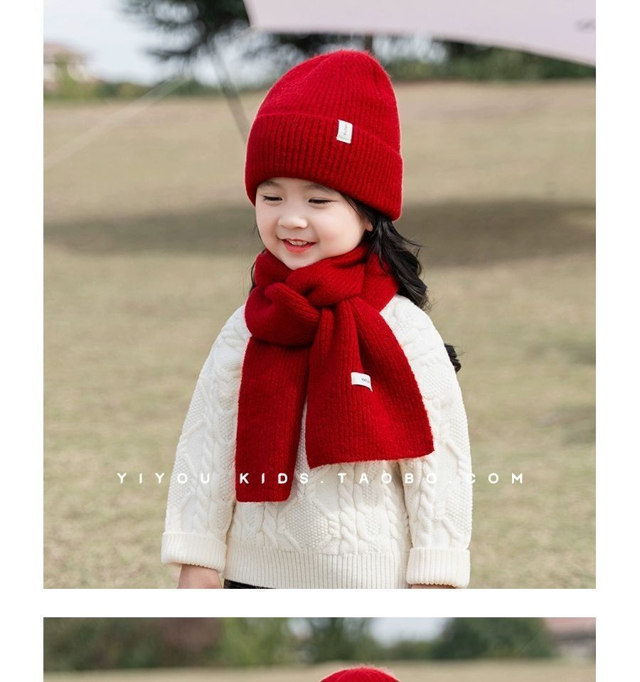 가을 겨울 어린이 모자 스카프 세트 새해 붉은 소녀 니트 양모 모자 크리스마스 소년 아기 따뜻한스토어 가기