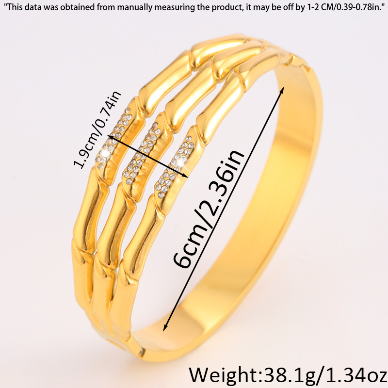 유럽과 미국의 국경 대나무 할로우 및 다이아몬드가 박힌 티타늄 팔찌 18k 골드 맞춤형 올 매치 하이 엔드 팔찌 여성용 팔찌