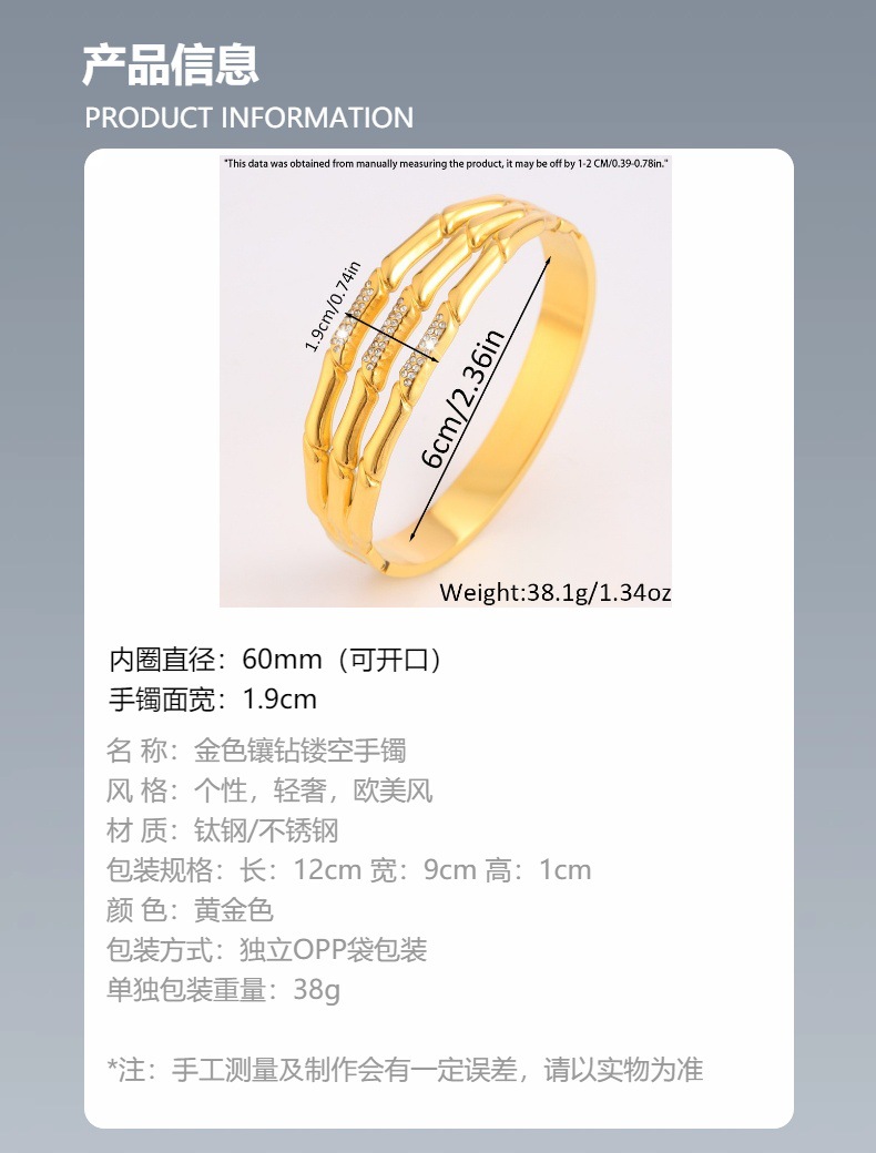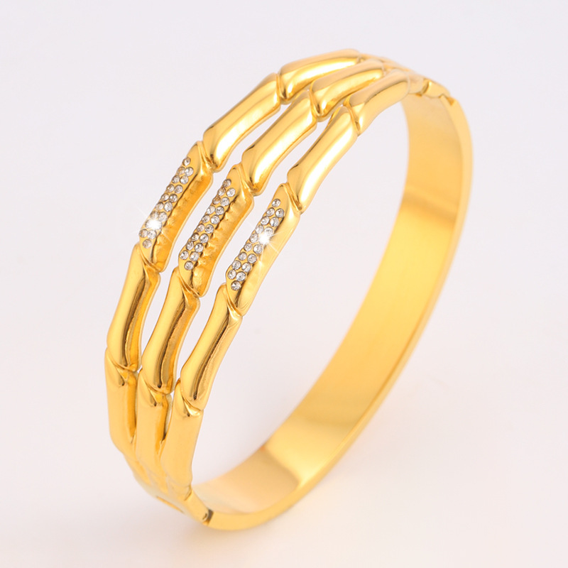 유럽과 미국의 국경 대나무 할로우 및 다이아몬드가 박힌 티타늄 팔찌 18k 골드 맞춤형 올 매치 하이 엔드 팔찌 여성용 팔찌스토어 가기