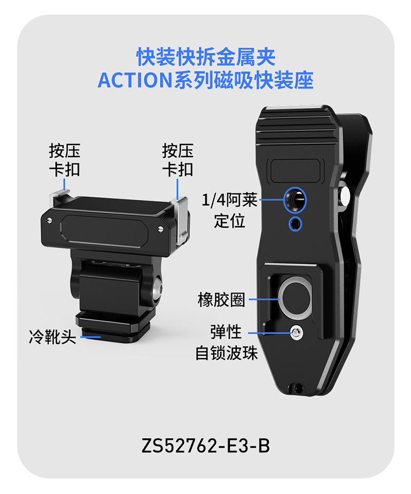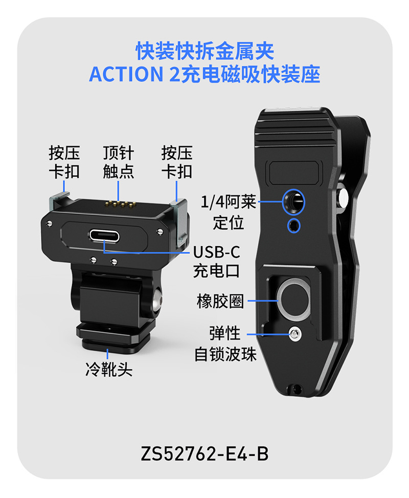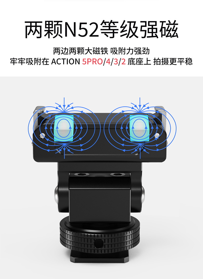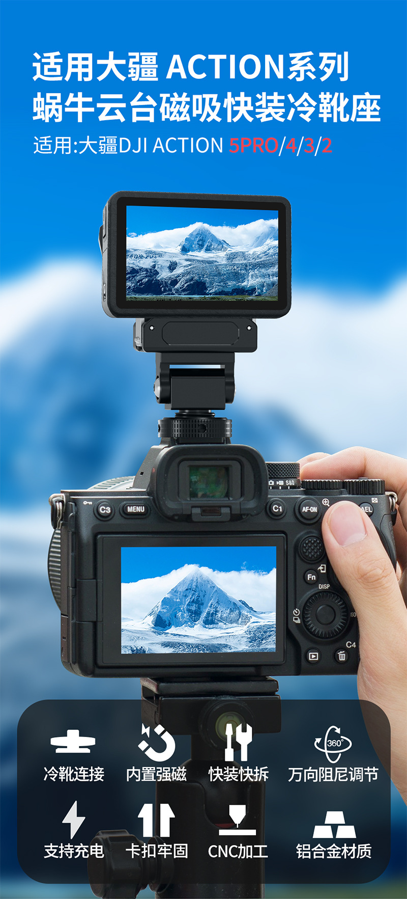 DJI Action5pro4/3/2 자기 흡입 빠른 분해 빠른 마운트 피치 댐핑 달팽이 Yuntai 브래킷 액세서리에 적용