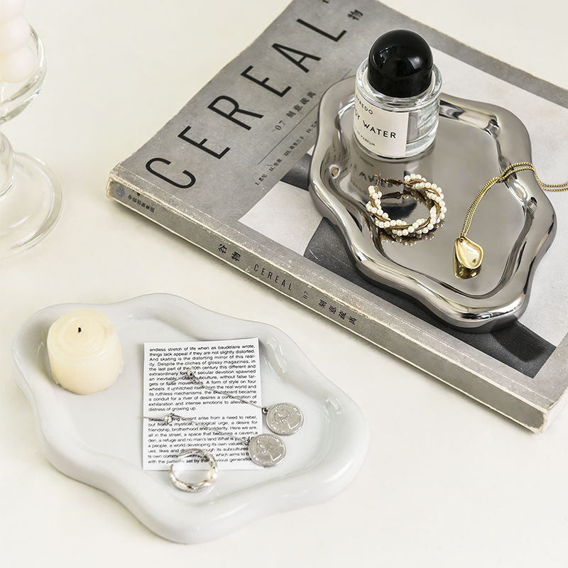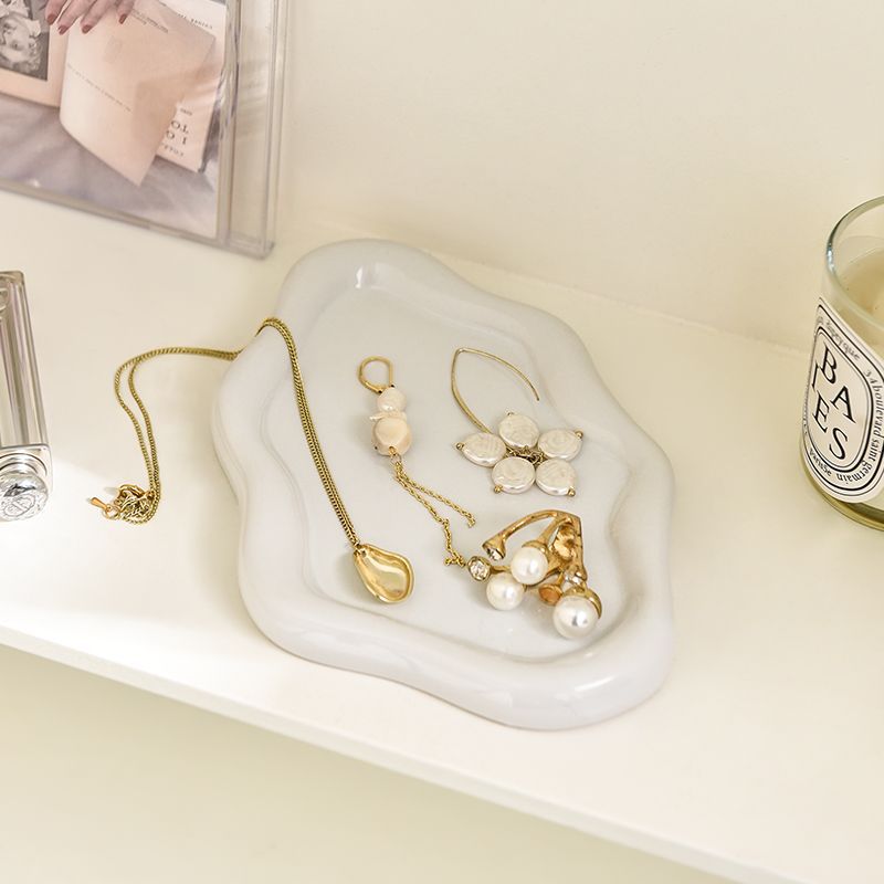 고급 센스 싱글 레이어 라이트 럭셔리 구름 세라믹 쥬얼리 스토리지 플레이트 입구 키 스토리지 쥬얼리 디스플레이 사진 소품스토어 가기