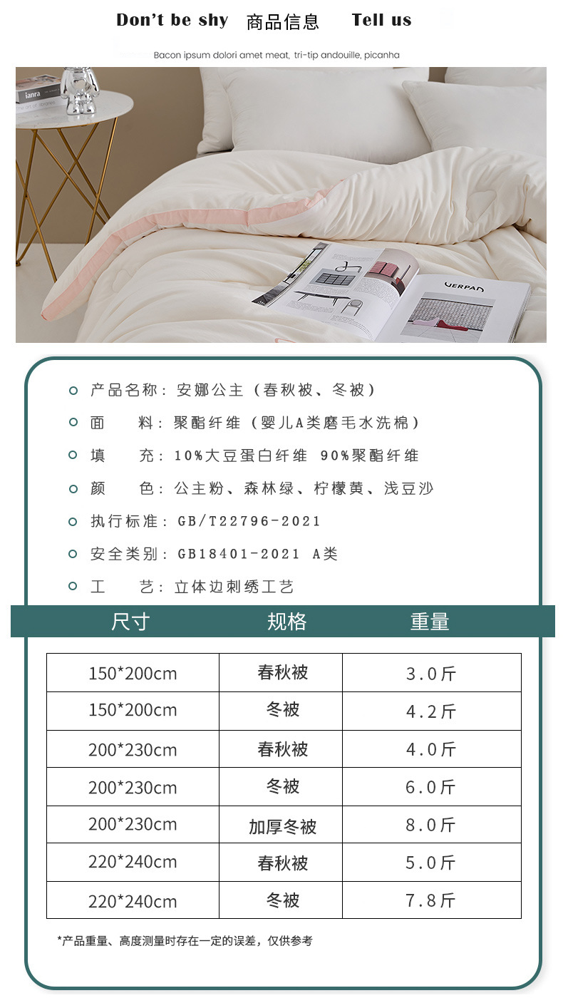 • 180x220cm 봄, 가을 이불 [대략 무게 2.5kg 실온 10-15에 적합℃】