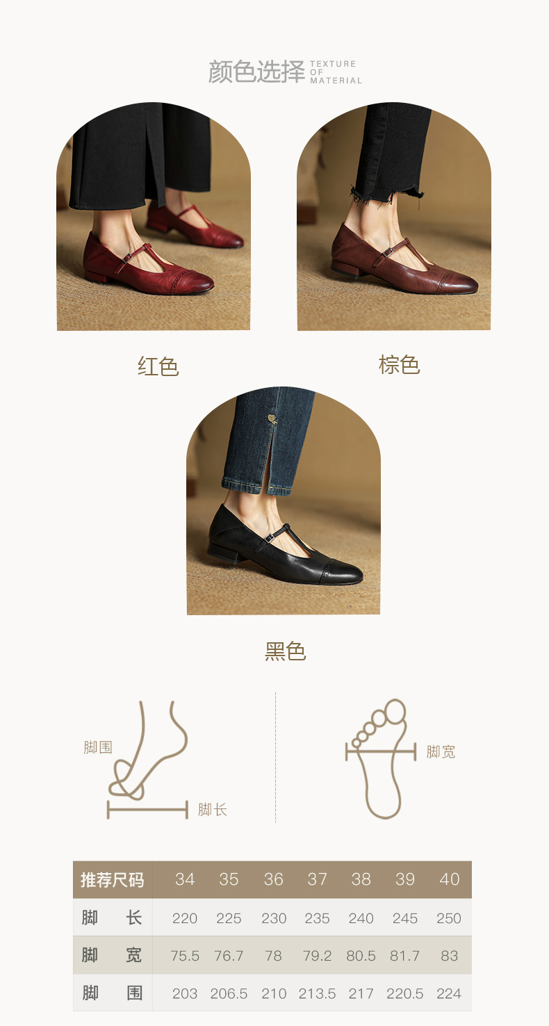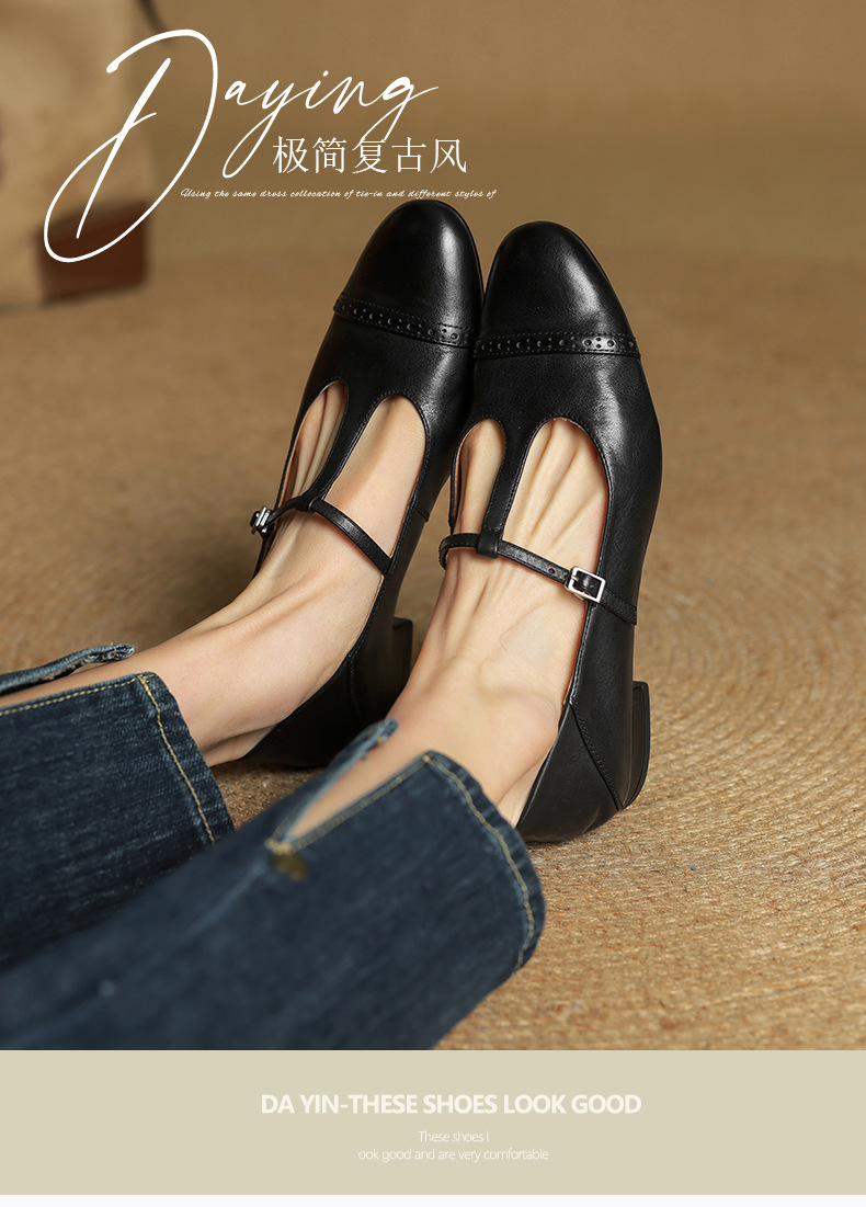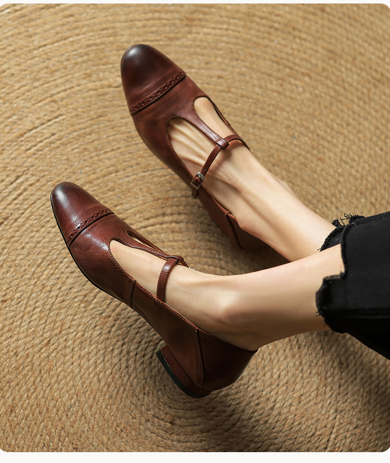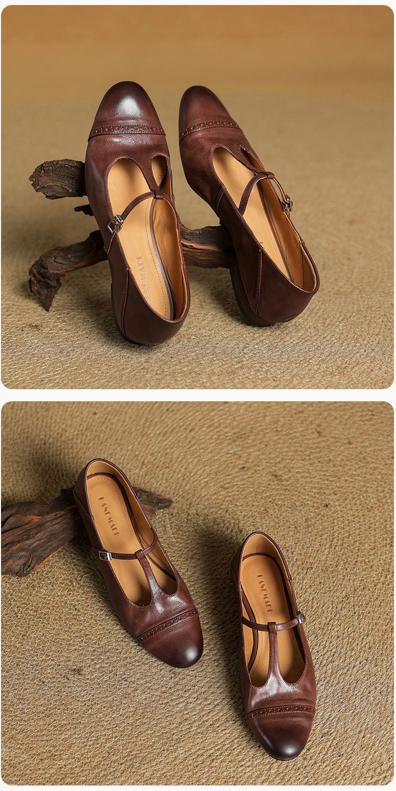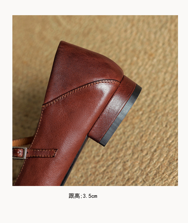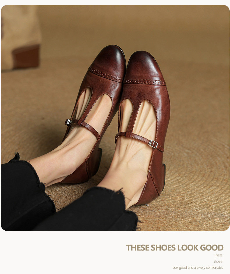 소가죽의 첫 번째 레이어 2025 봄과 가을 복고풍 스타일 T 자형 신발 두꺼운 뒤꿈치 레드 메리 제인 신발 여성용 T 자형 신발스토어 가기