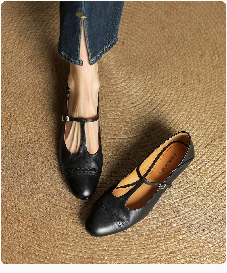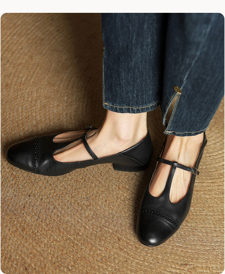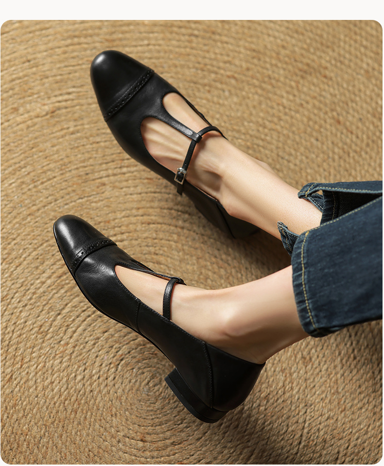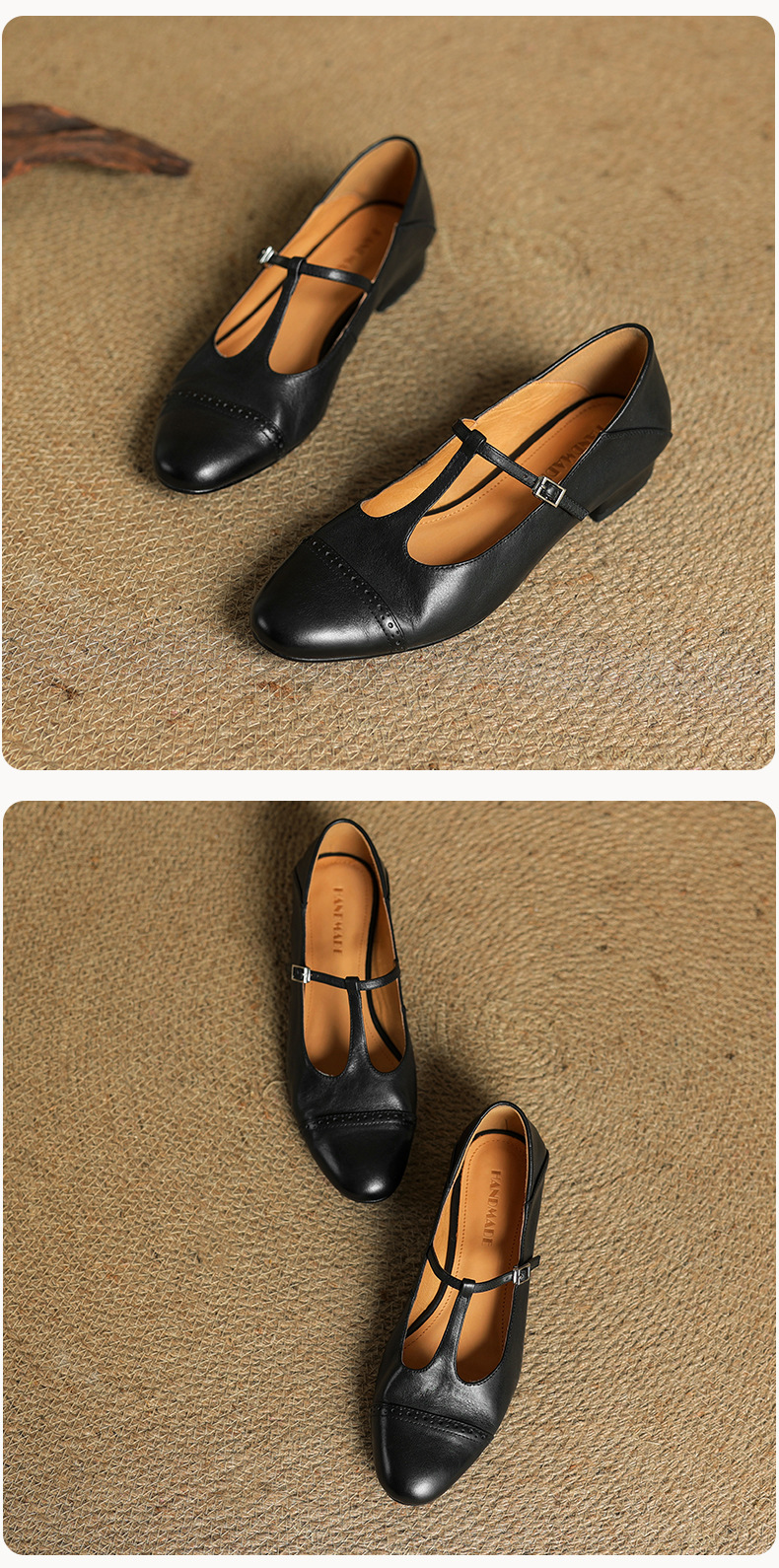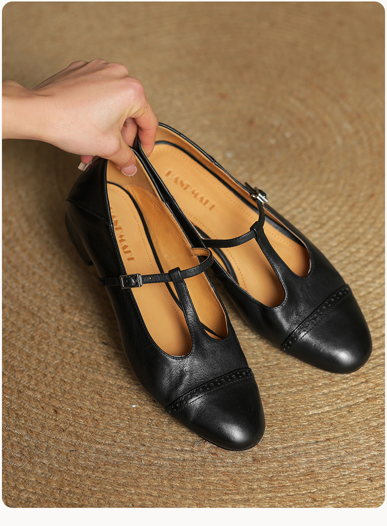 소가죽의 첫 번째 레이어 2025 봄과 가을 복고풍 스타일 T 자형 신발 두꺼운 뒤꿈치 레드 메리 제인 신발 여성용 T 자형 신발스토어 가기