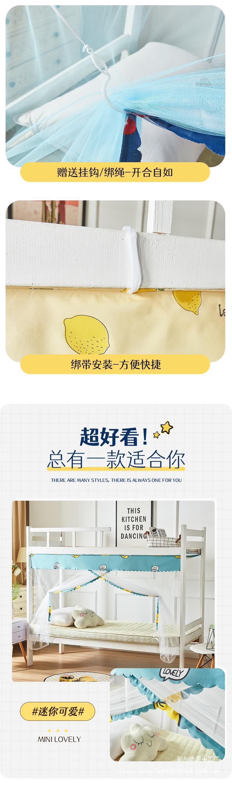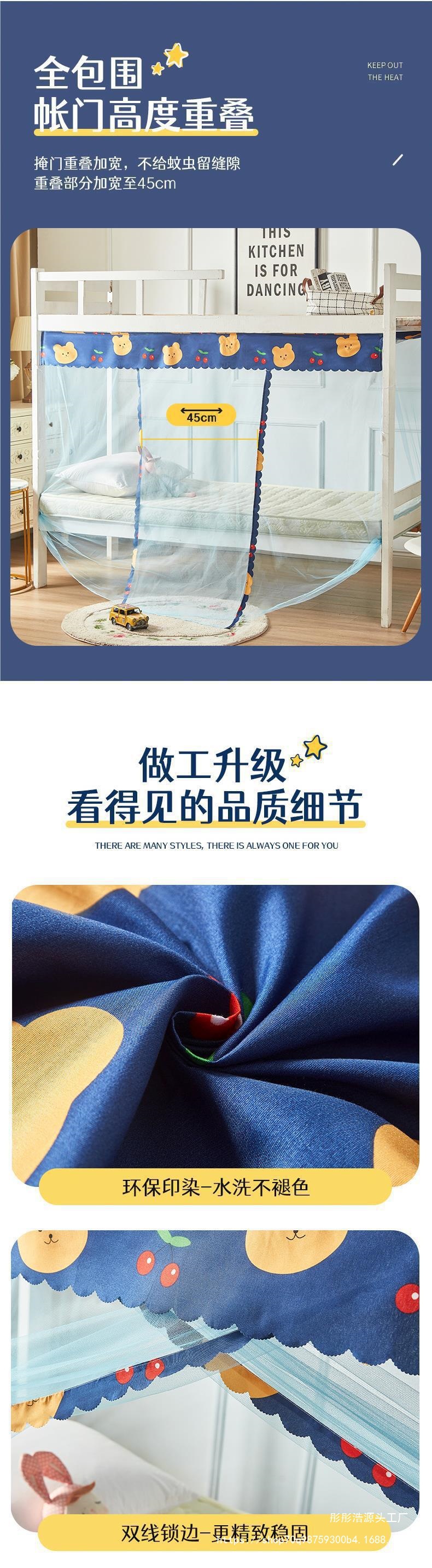 2024 모기장 학생 기숙사 싱글 침대 0.9m 상부 이층 하부 이층 침실 1.2/1.5 m 1.8 방진 더블 침대