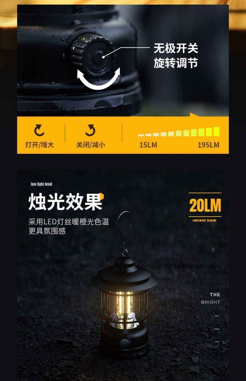 레트로 캠핑 램프 충전식 캠핑 램프 LED 소형 램프 야외 분위기 조명 휴대용 램프 텐트 램프 분위기 조명스토어 가기