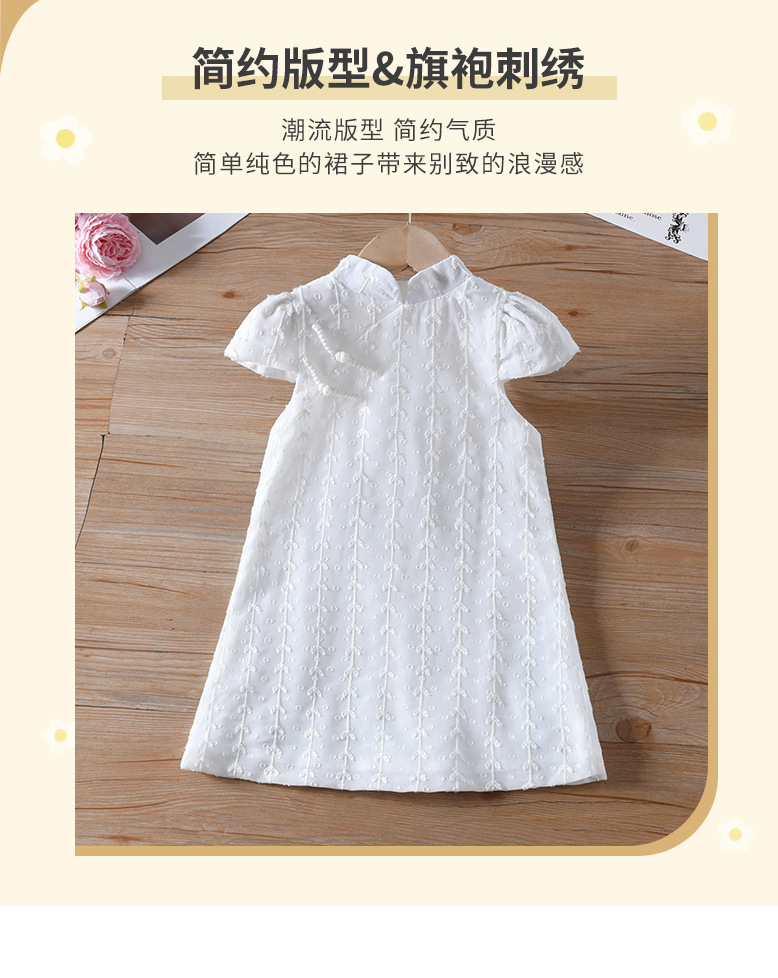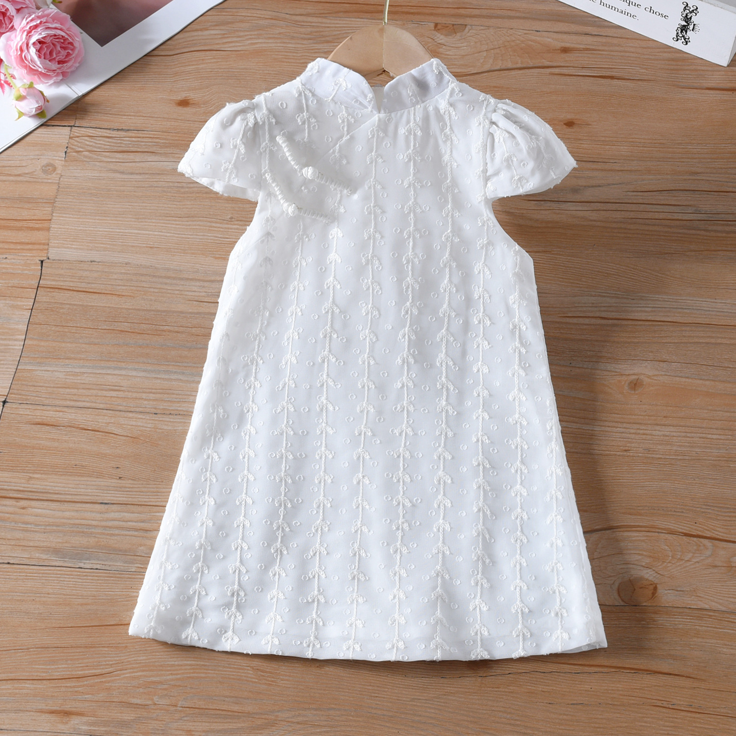 소녀 새 중국 스타일 원피스 2025 년 여름 새로운 어린이 국가 스타일 청삼 수 놓은 흰색 시폰 공주 원피스스토어 가기
