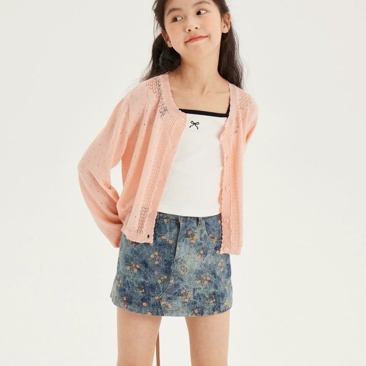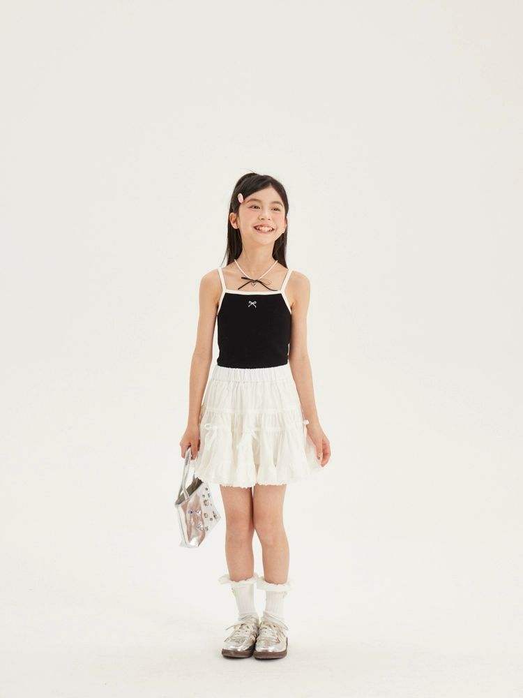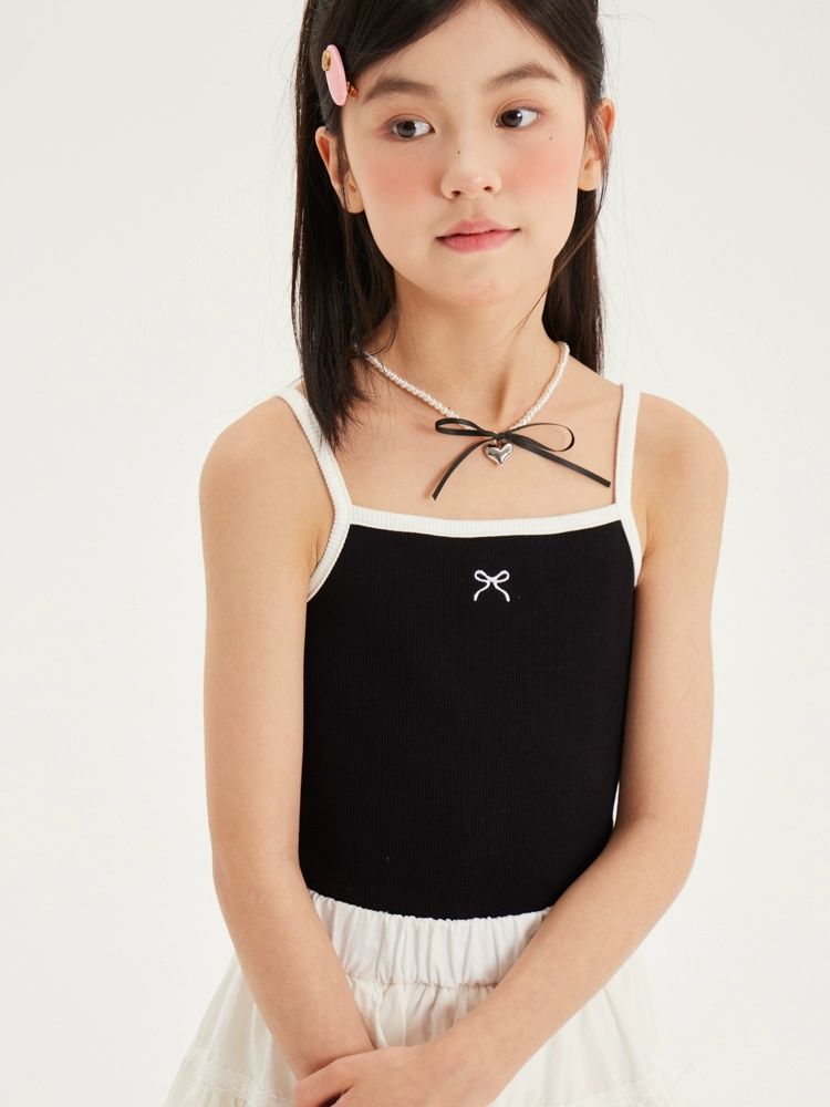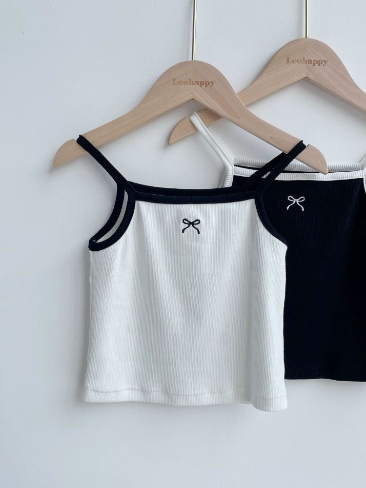 2024 소녀의 짧은 카미솔 아기의 여름 한국 얇은 탑 어린 소녀의 얼음 실크 자수 내부 랩스토어 가기