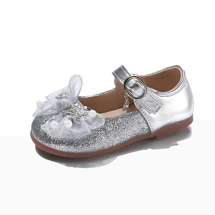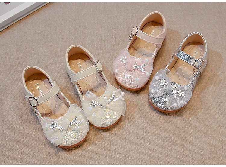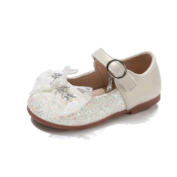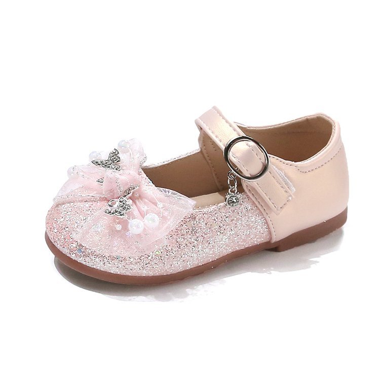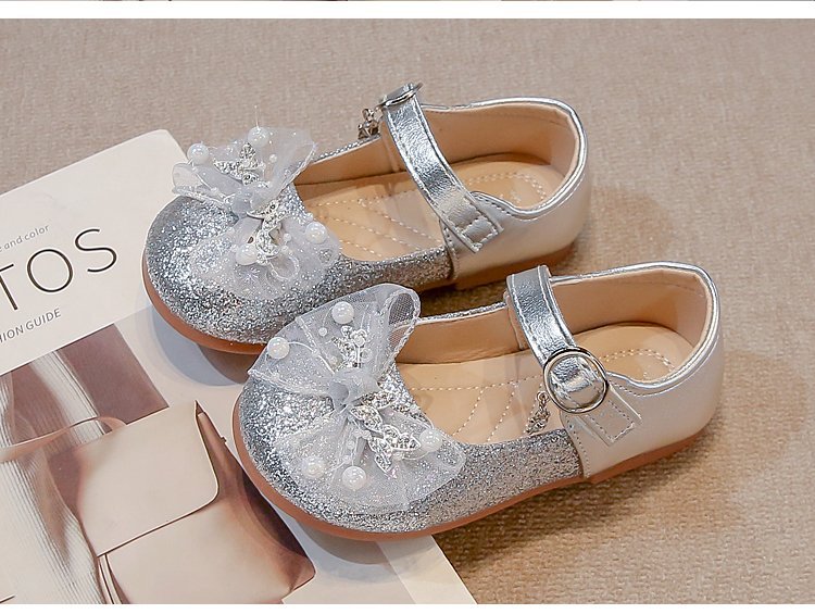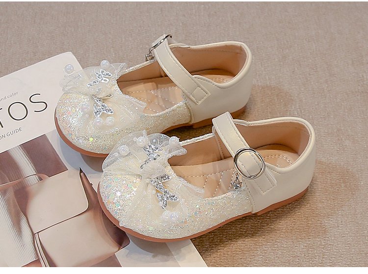 소녀 공주 신발 빛나는 크리스탈 신발 2025 봄 새로운 어린이 신발 부드러운 밑창 가죽 신발 작은 소녀 원피스 신발