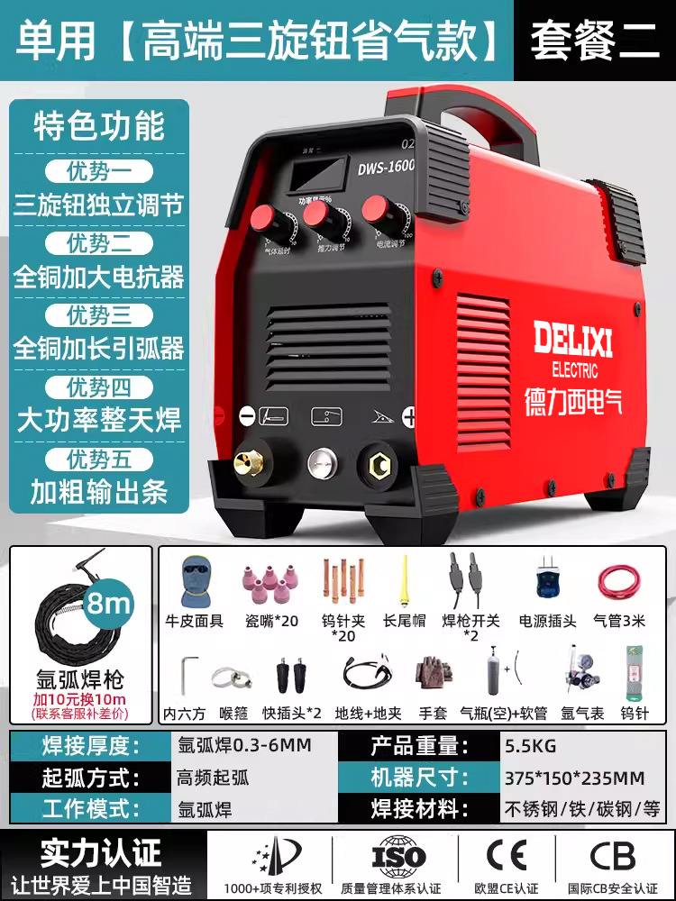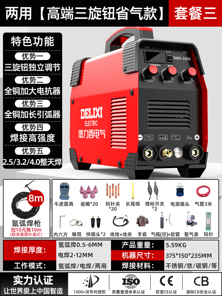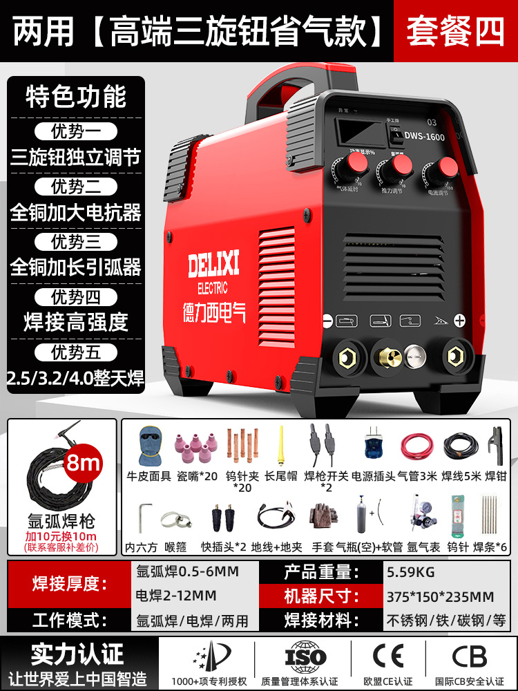 Delixi 아르곤 아크 용접 기계 220v 스테인레스 스틸 작은 가정용 산업 등급 가스 보호 이중 목적 전기 용접 기계 다른스토어 가기