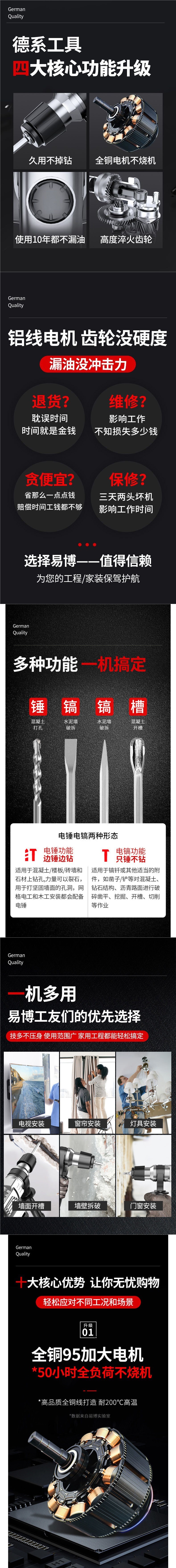 고출력 전기 해머 전기 픽 전기 드릴 3 목적 다기능 가정용 충격 드릴 엔지니어링 콘크리트 무거운 망치 전기 공구스토어 가기