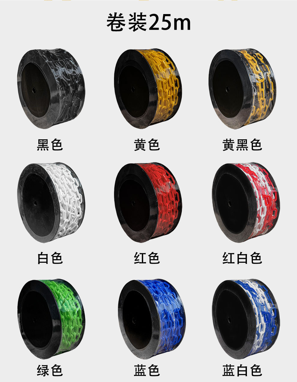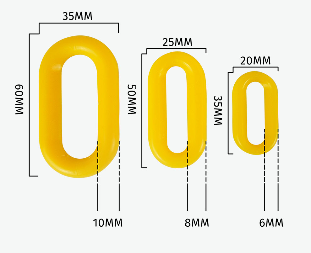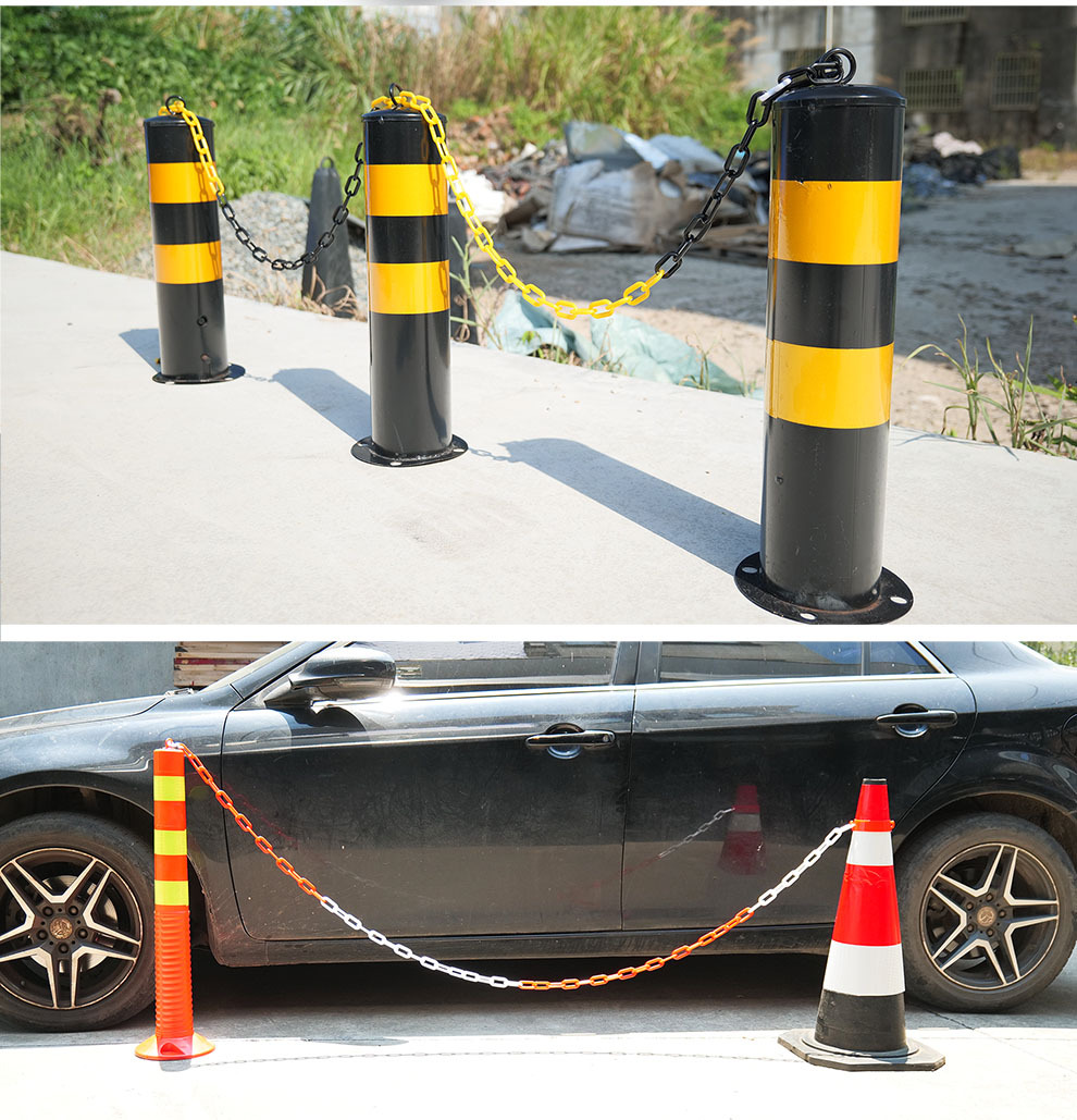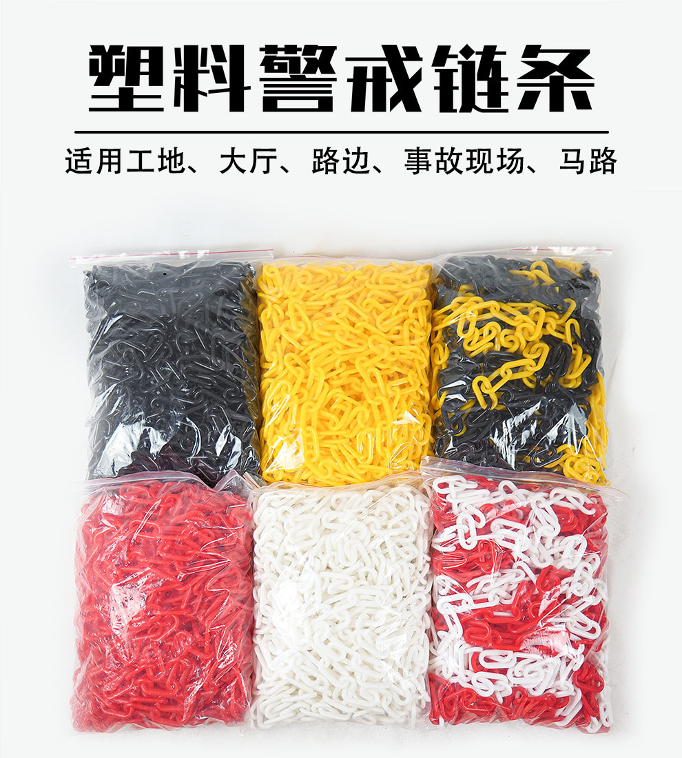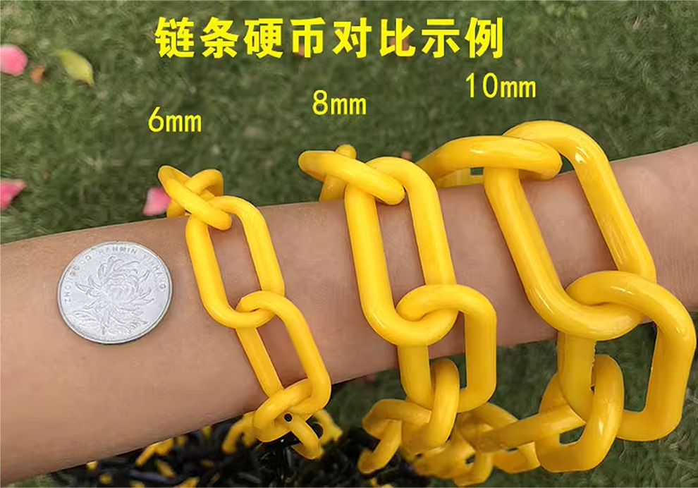 교통 새로운 8mm 플라스틱 체인 경고 체인 검은 노란색 빨간색 흰색 플라스틱 보호 체인 6mm 도로 콘 링크 체인
