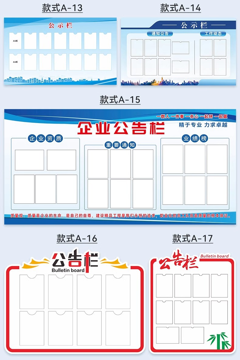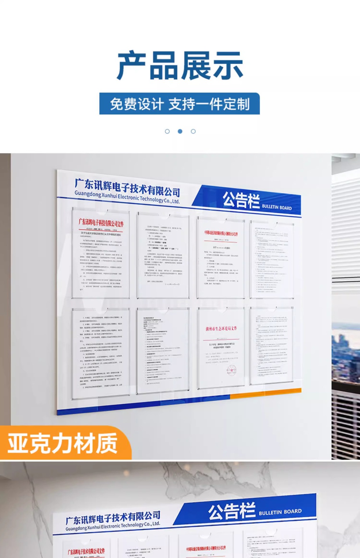 工厂办公室亚克力插盒定制公示栏展示板 物业小区楼道墙贴宣传栏