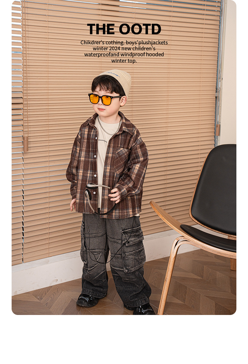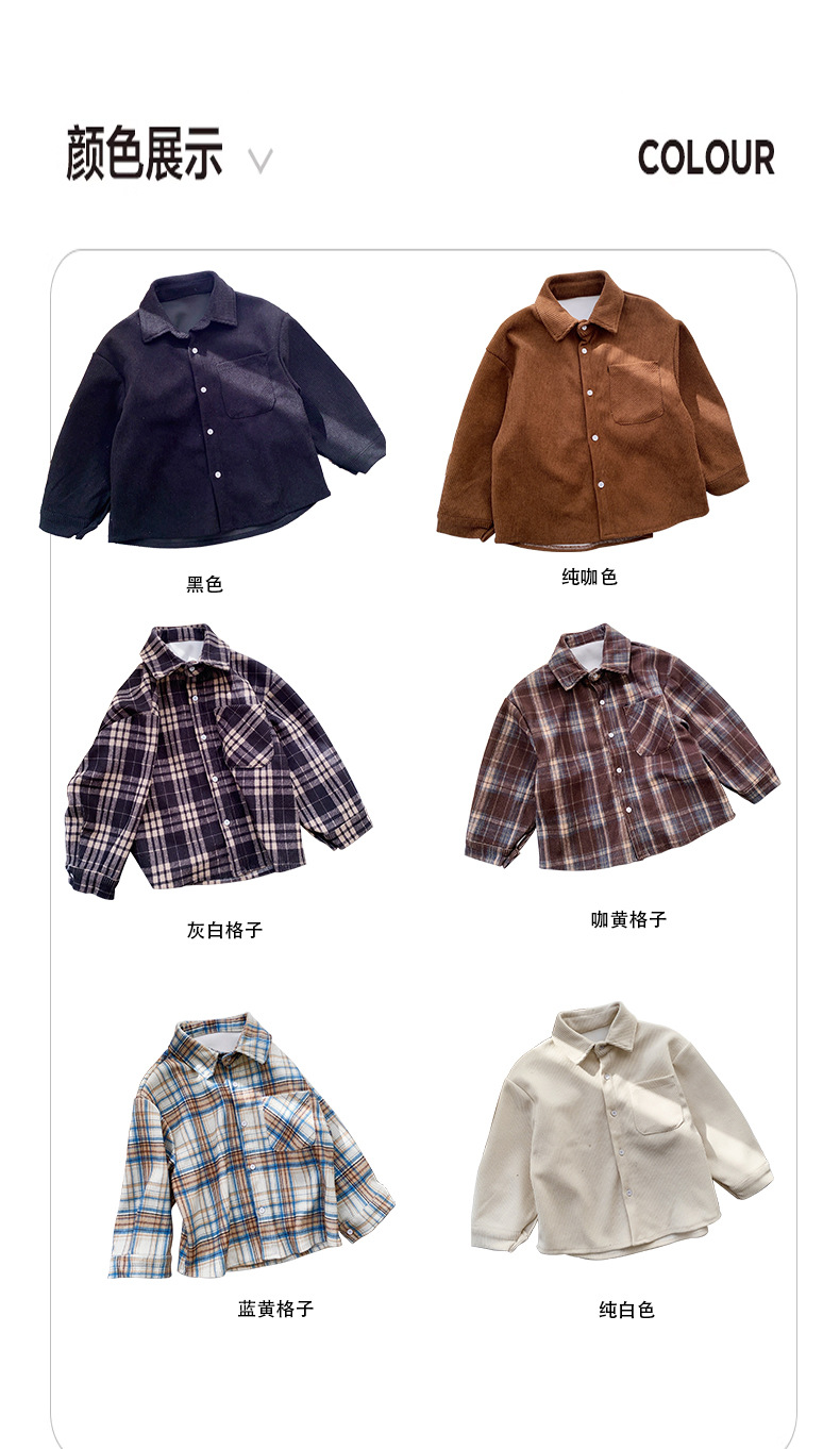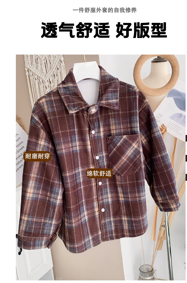 소년 격자 무늬 긴 소매 셔츠 재킷 봄과 가을 새로운 2025 어린이 코듀로이 탑 걸스 셔츠 트렌디스토어 가기