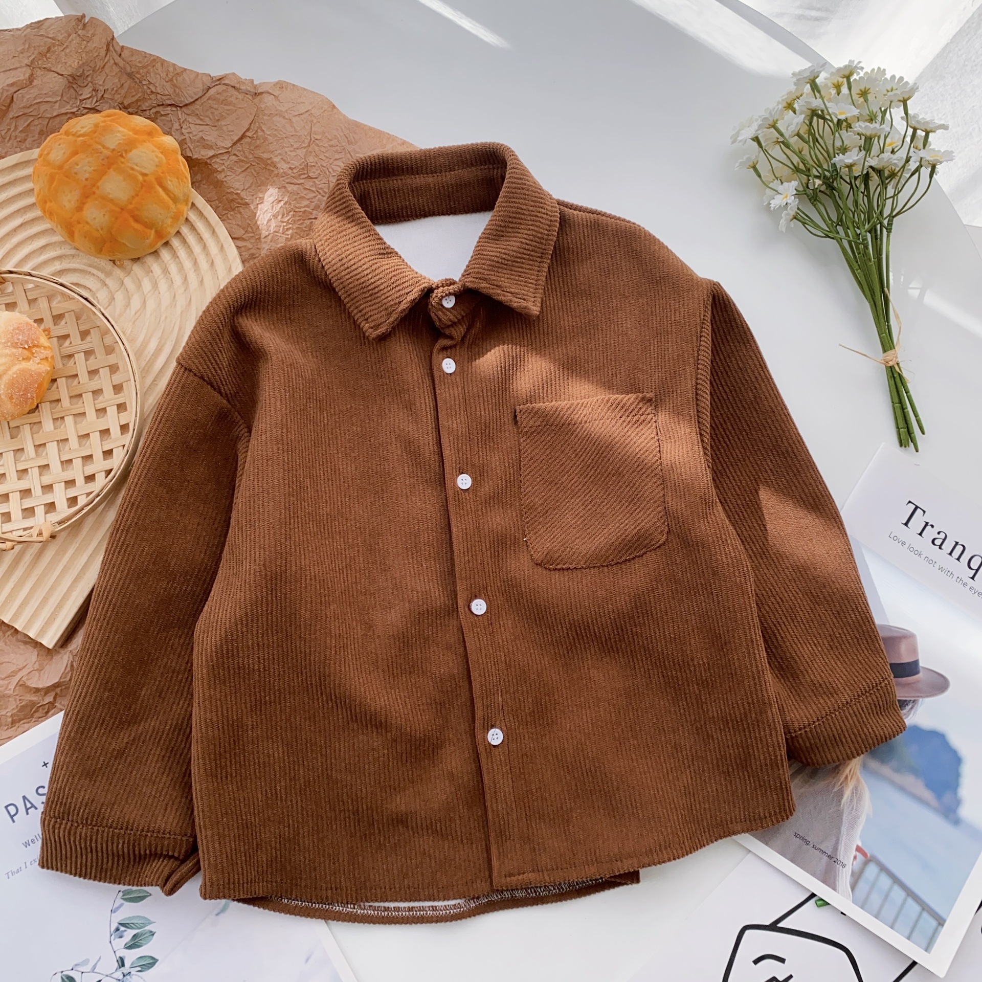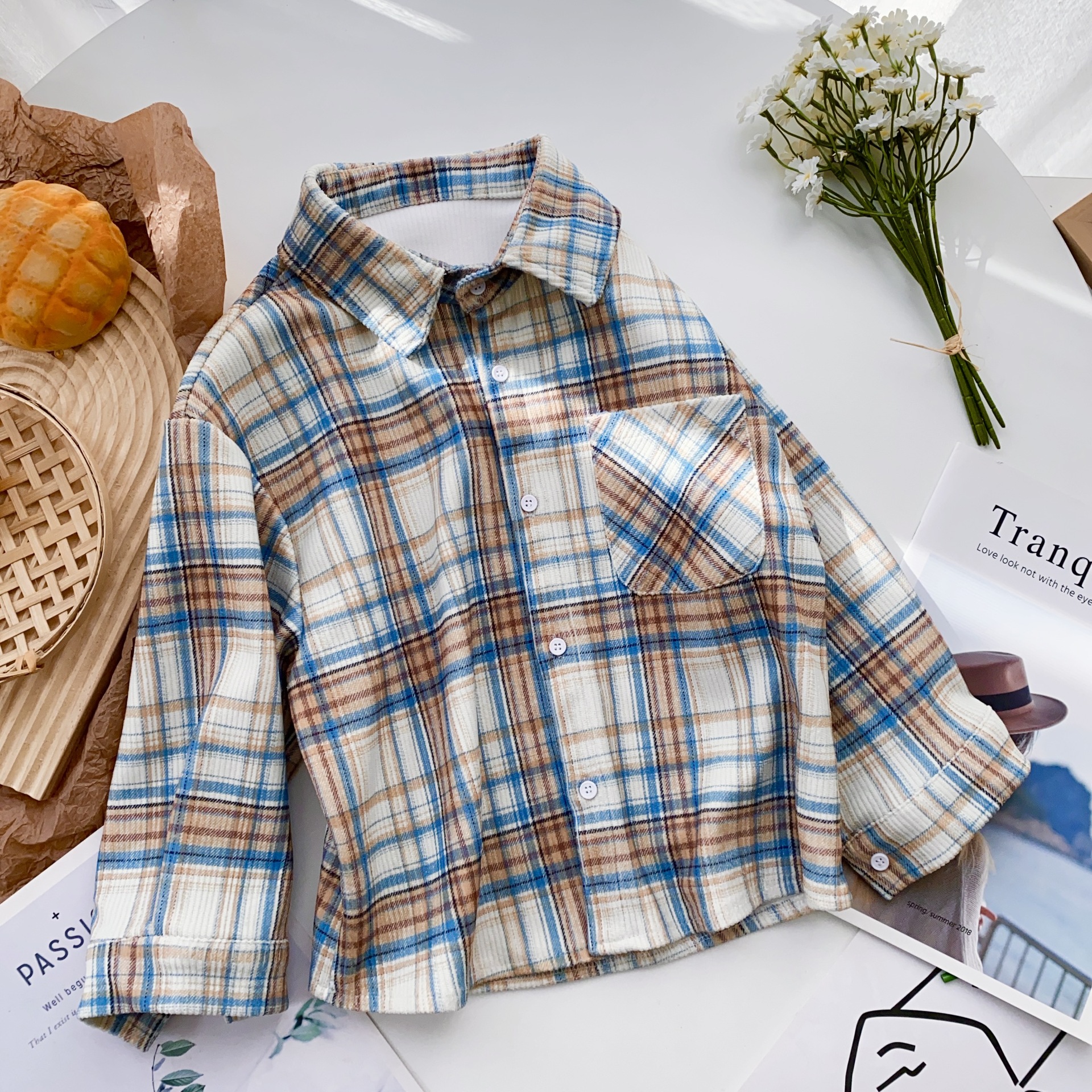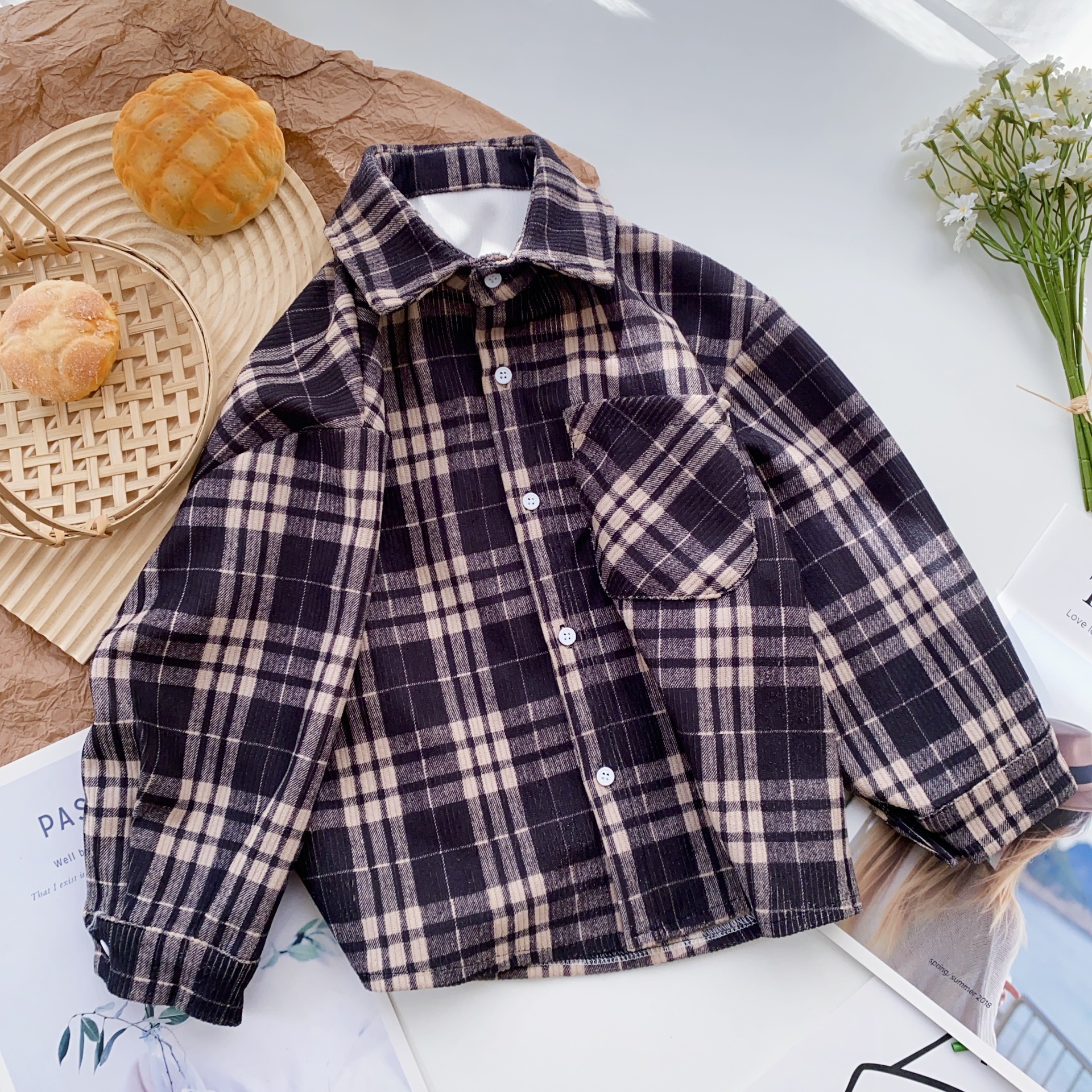 소년 격자 무늬 긴 소매 셔츠 재킷 봄과 가을 새로운 2025 어린이 코듀로이 탑 걸스 셔츠 트렌디스토어 가기