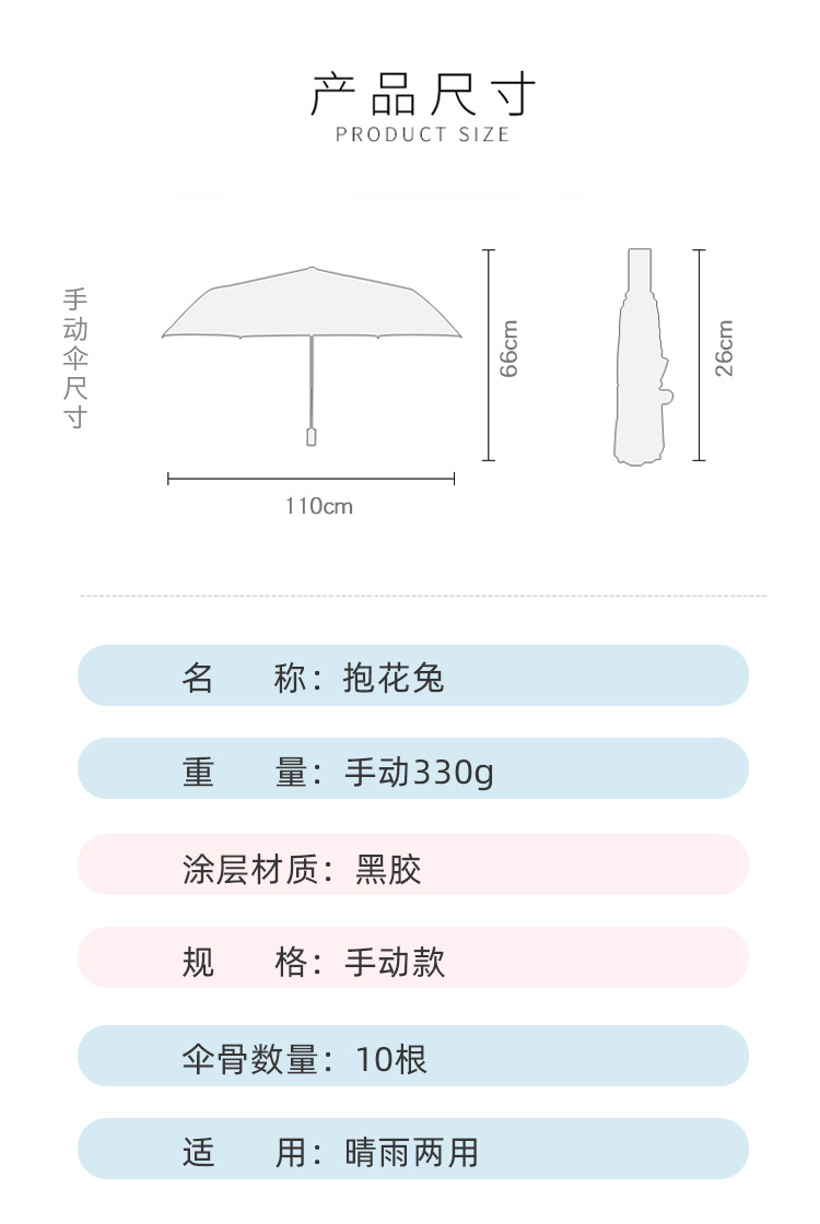 도매 귀여운 간단한 꽃 토끼 안티 자외선 태양 우산 차양 작은 신선한 치유 검은 고무 만화 우산스토어 가기