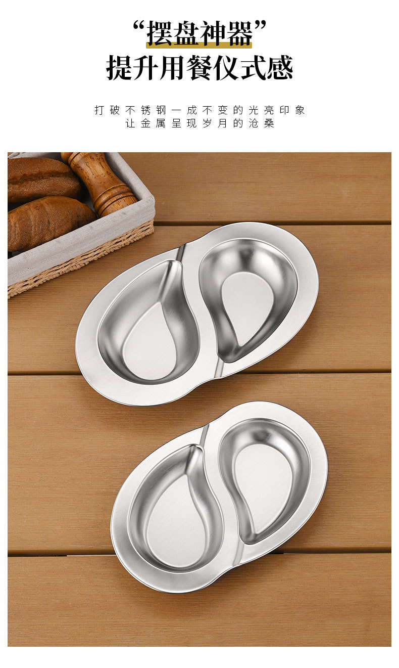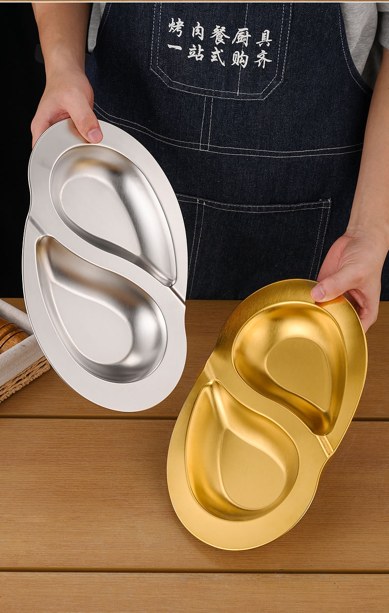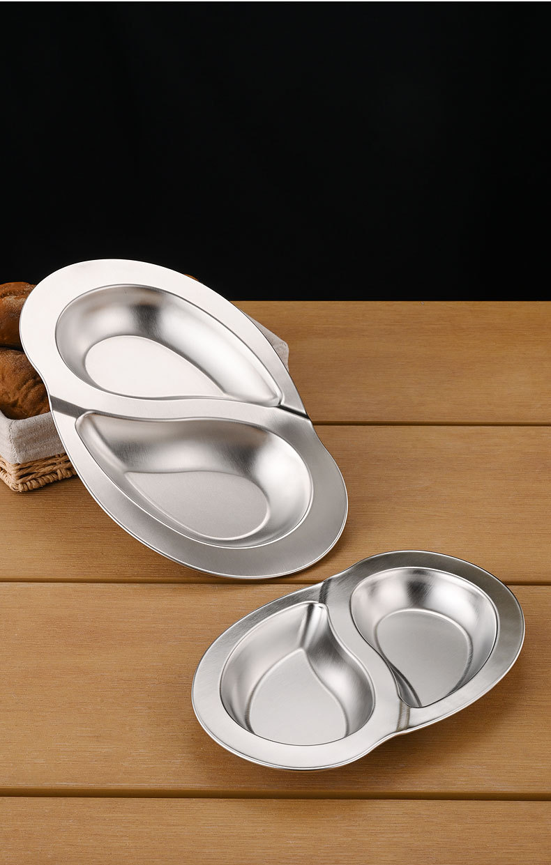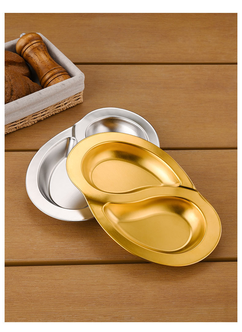 한국식 스테인레스 스틸 더블 플래터 스플릿 플레이트 창조적 인 스낵 플레이트 차가운 접시 작은 음식 튀김 접시 작은 접시 얕은 접시