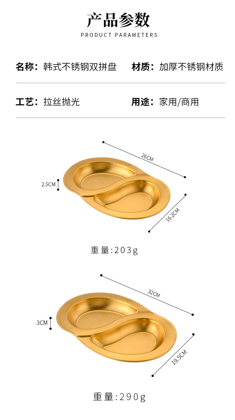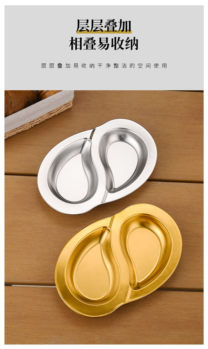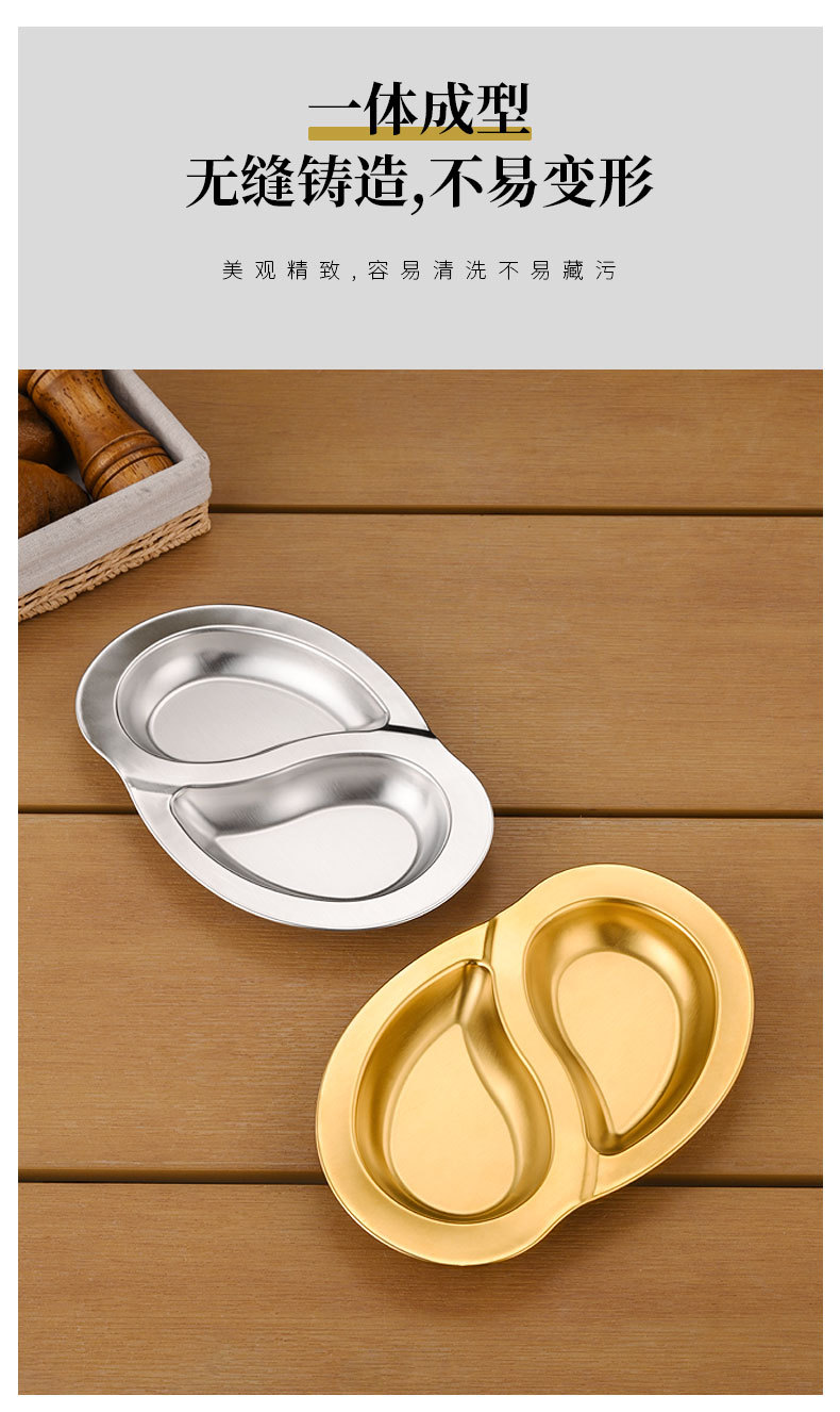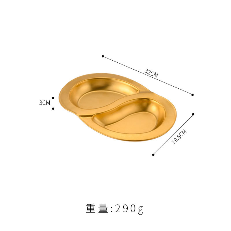 한국식 스테인레스 스틸 더블 플래터 스플릿 플레이트 창조적 인 스낵 플레이트 차가운 접시 작은 음식 튀김 접시 작은 접시 얕은 접시