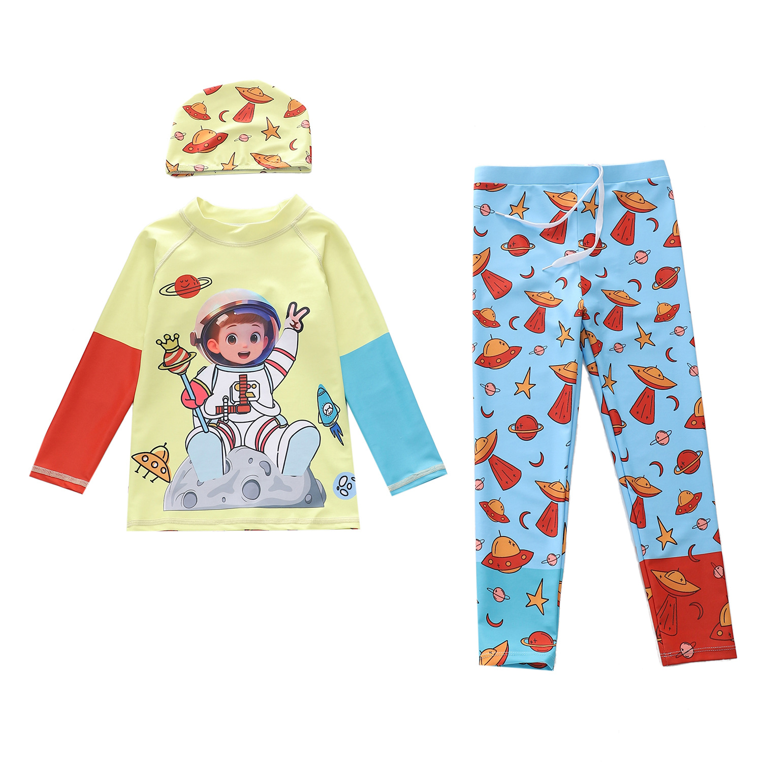 2025 남성과 소년을위한 새로운 어린이 수영복 바지 바지 긴 소매 수영복 중소 및 대형 어린이 선 스크린 서핑 수영복