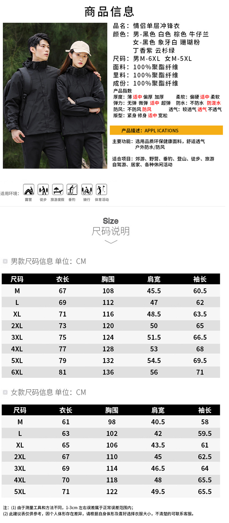 2023 새로운 야외 등산 여행 야외 의류 싱글 레이어 충전 의류 남성 재킷 싱글 레이어 재킷 남성과 여성의 사랑