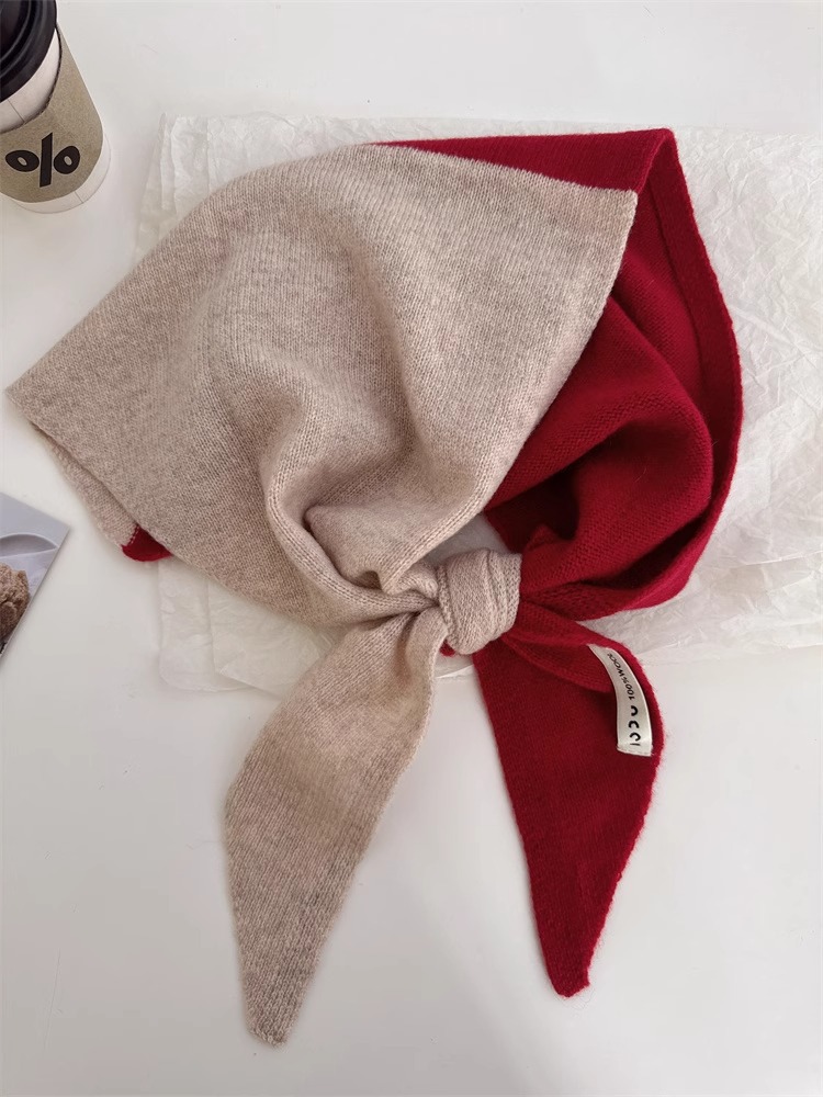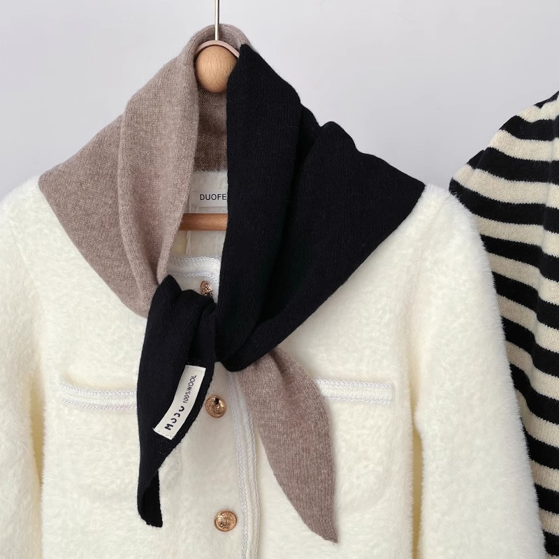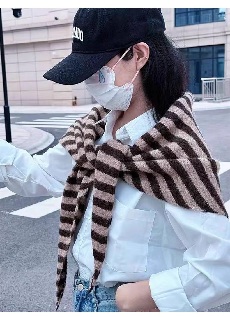 한국 주문 100% 호주 울 삼각형 스카프 헤드 스카프 니트 줄무늬 스카프 여성용 다기능 작은 스카프 칼라스토어 가기