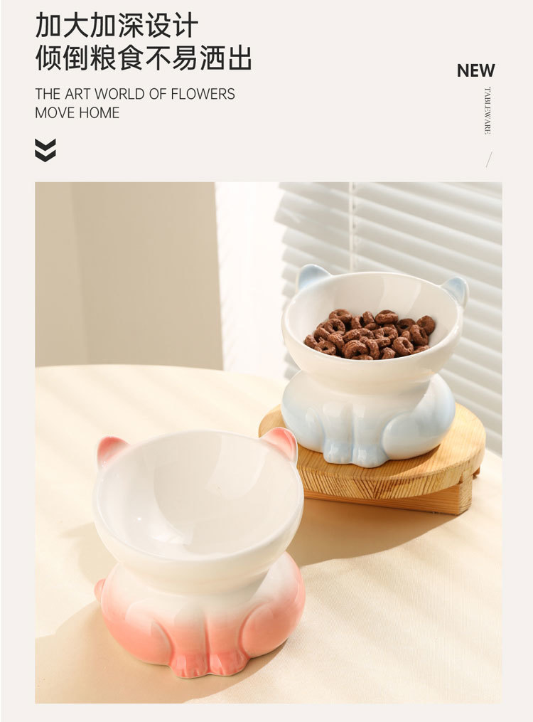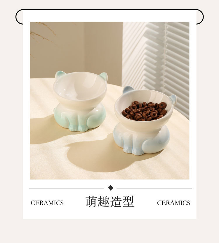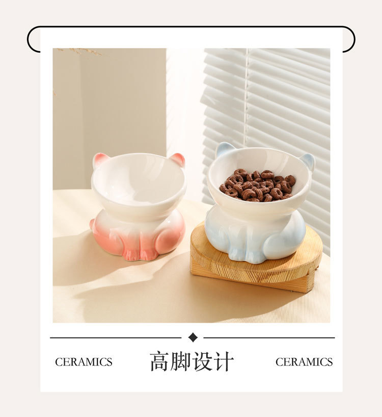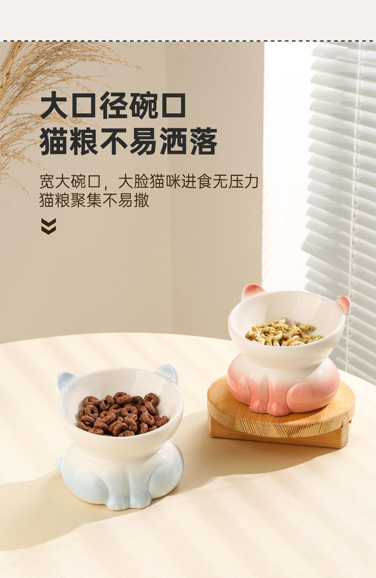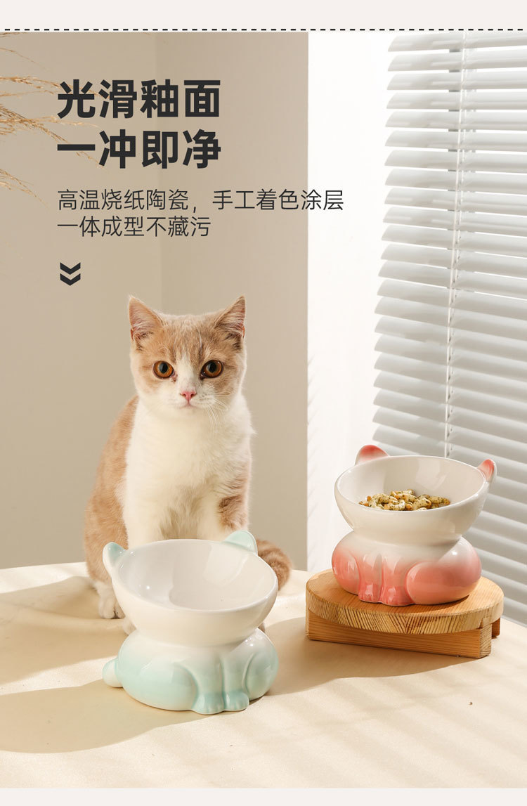 고양이 그릇 세라믹 높은 발 비스듬한 목 보호 식품 분지는 큰 직경의 검은 턱을 고양이 아기 고양이 밥 그릇에 두드리기 쉽지 않습니다.스토어 가기