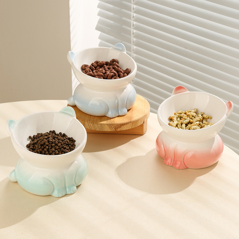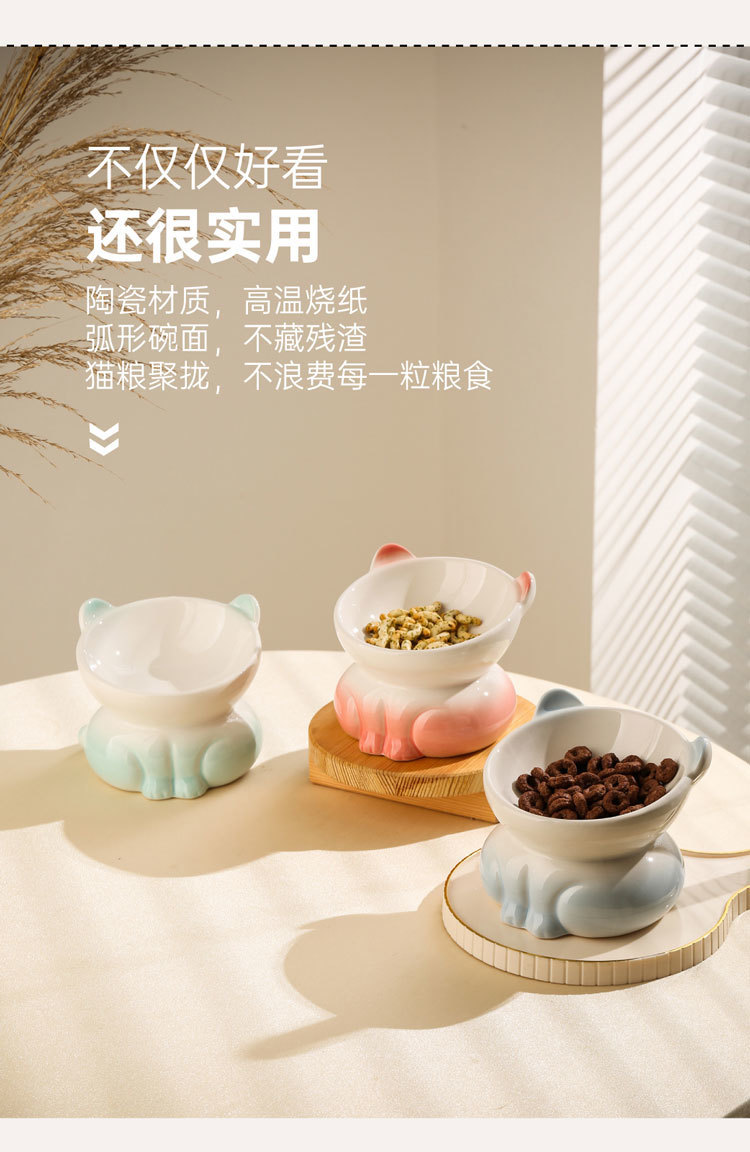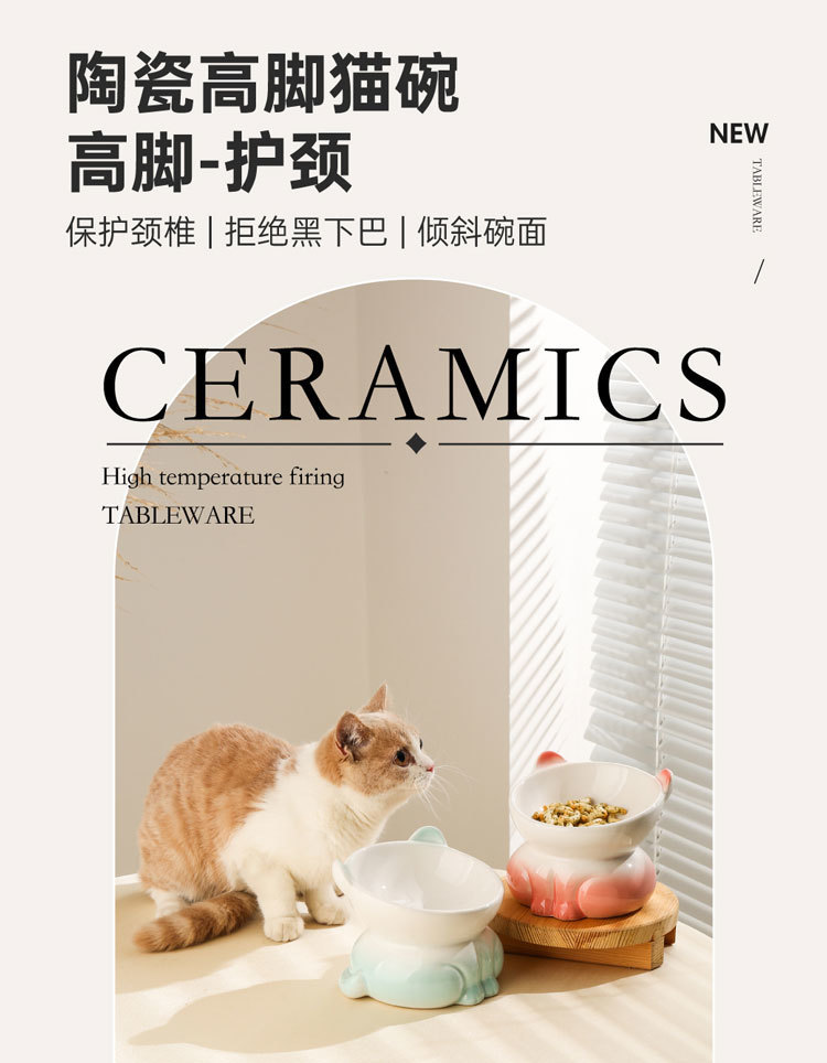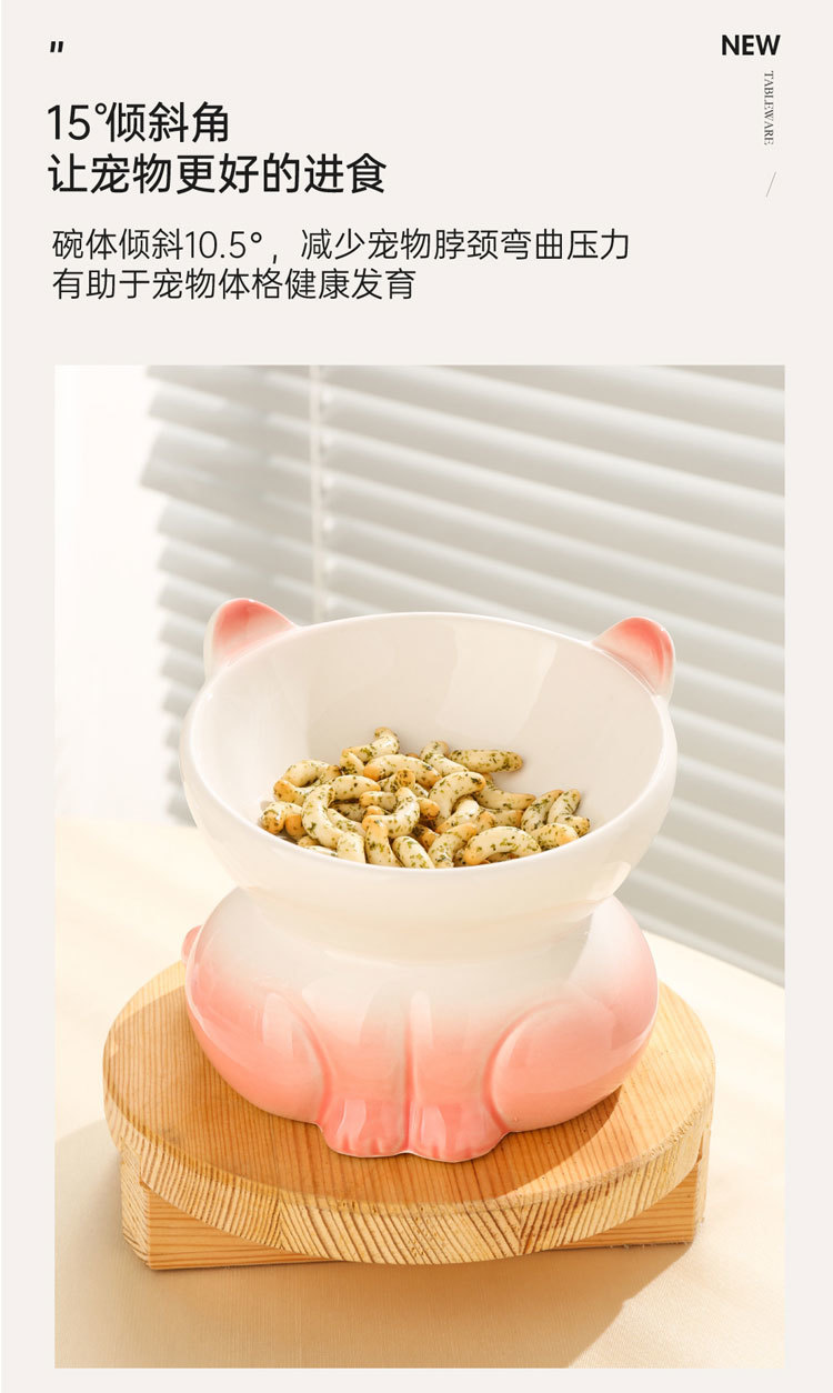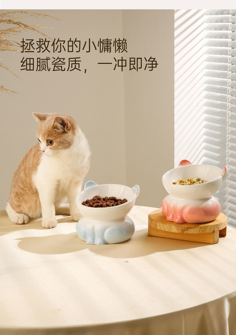 고양이 그릇 세라믹 높은 발 비스듬한 목 보호 식품 분지는 큰 직경의 검은 턱을 고양이 아기 고양이 밥 그릇에 두드리기 쉽지 않습니다.스토어 가기