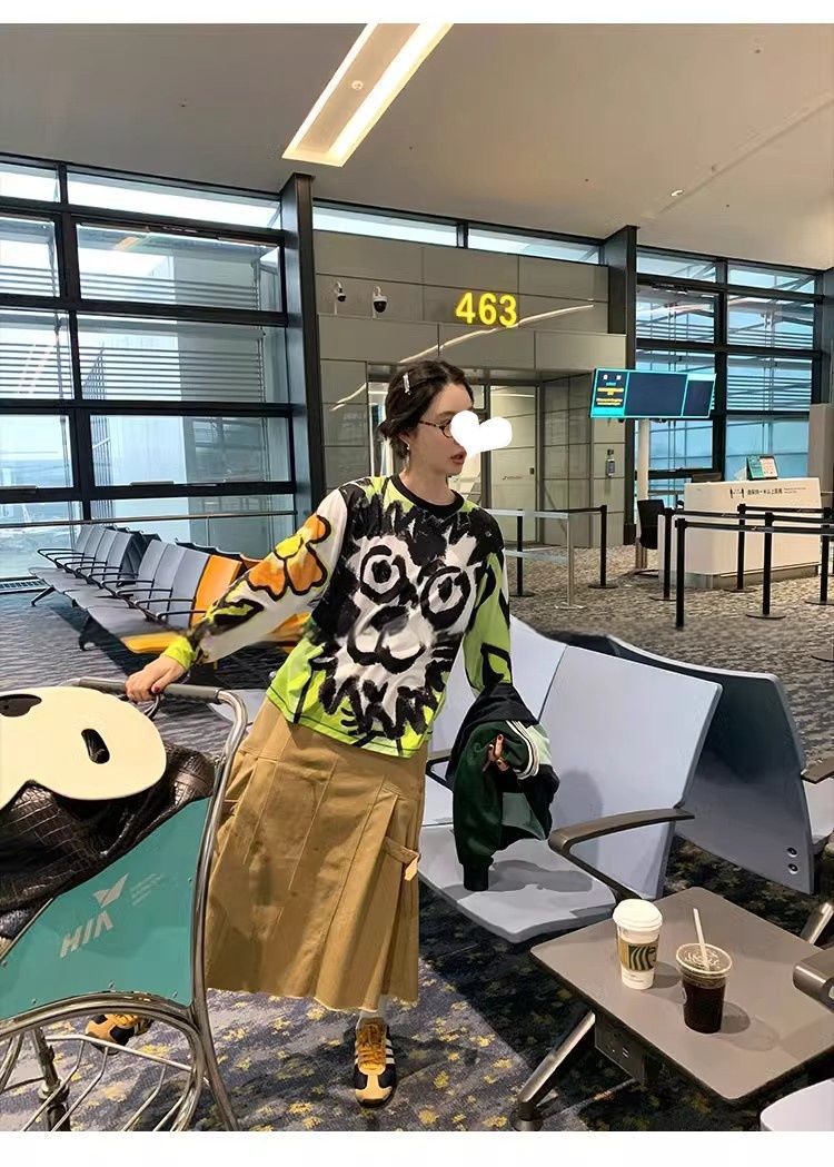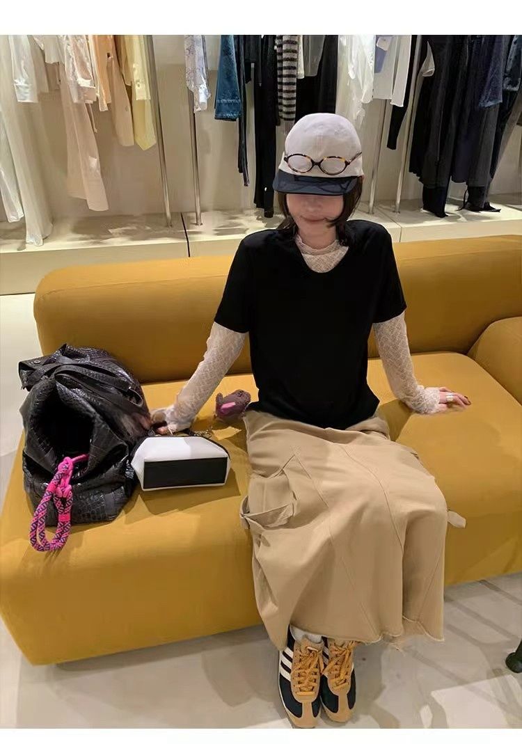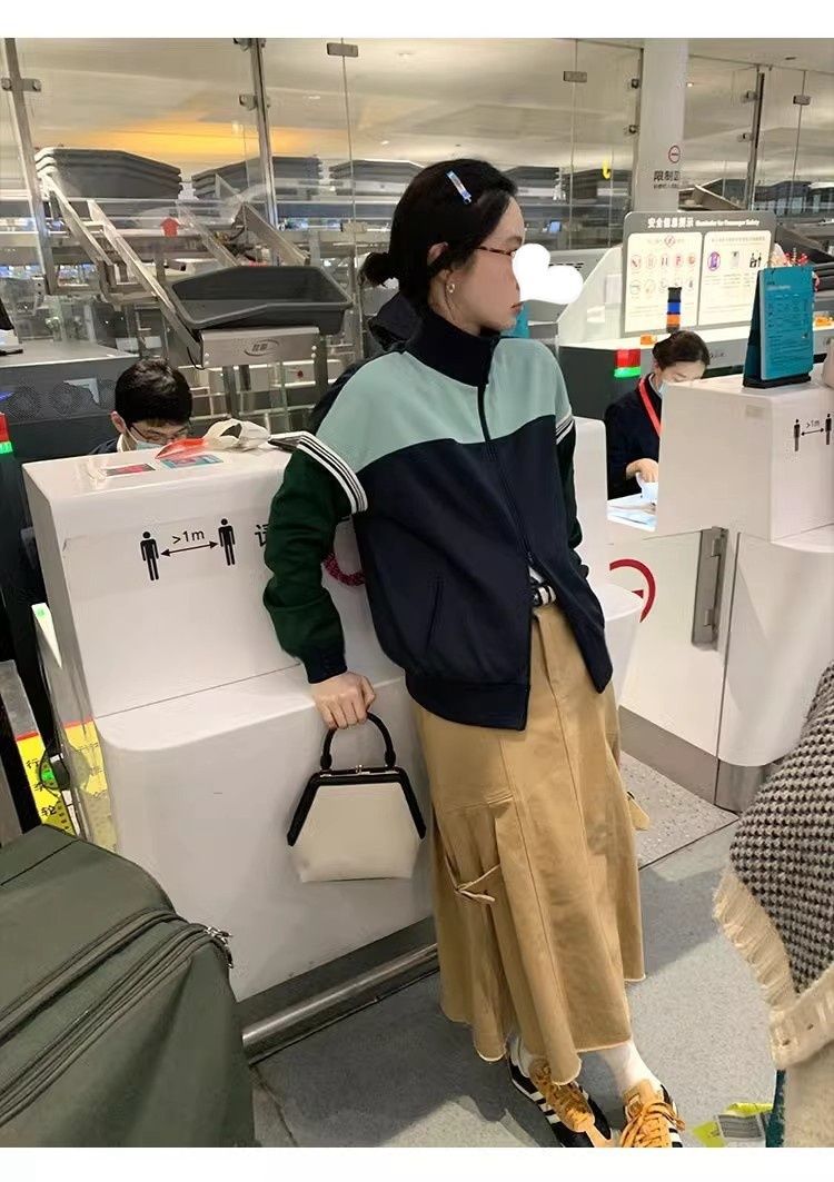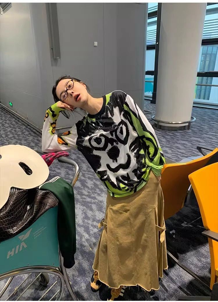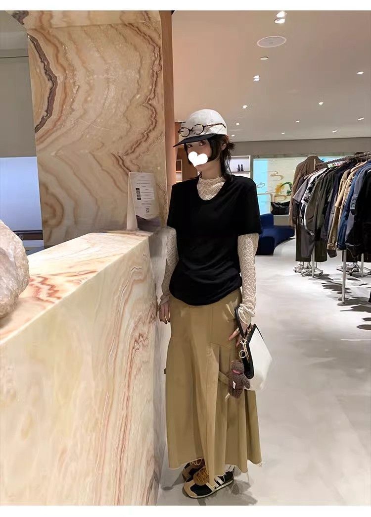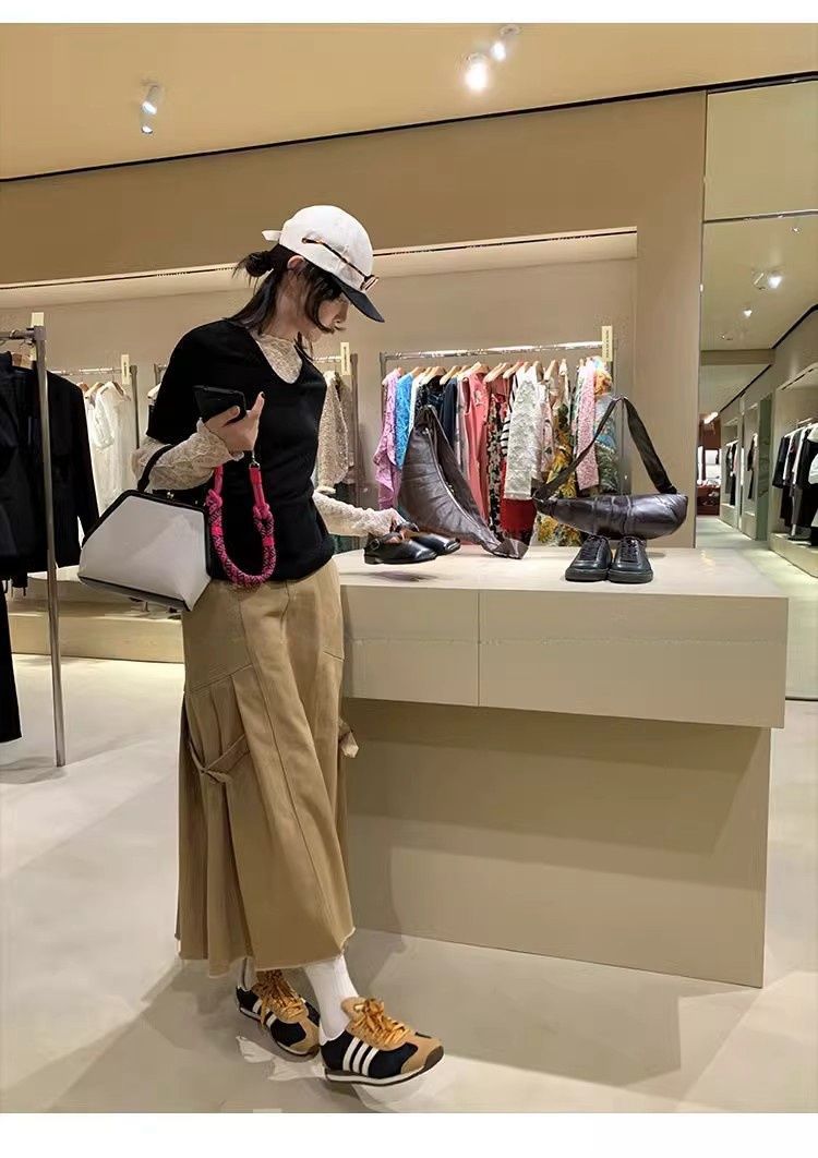 카키 불규칙한 높은 허리 데님 스커트 여성 봄과 여름 플러스 사이즈 통통녀 복고풍 디자인 주름 미디 스커트스토어 가기